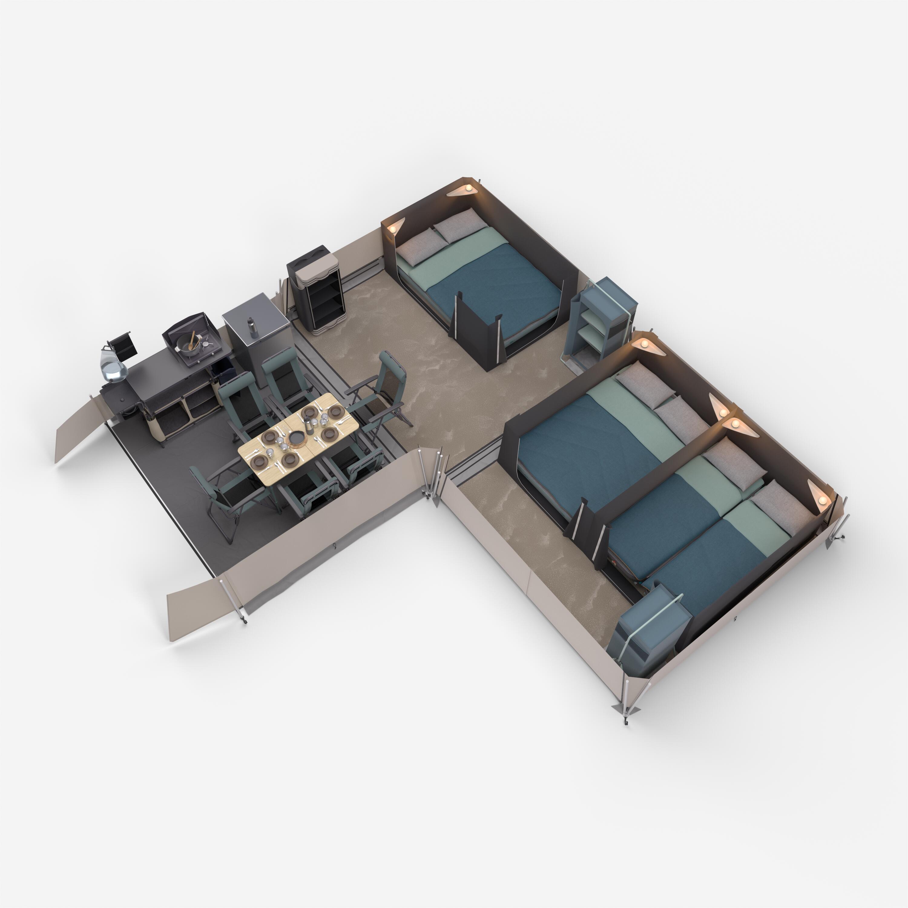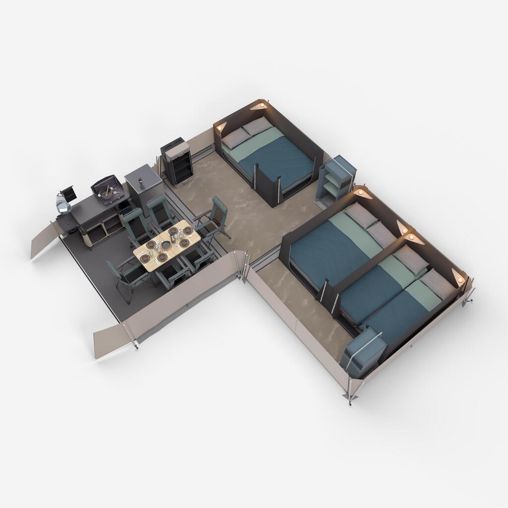 Για να εξασφαλίσετε τη βέλτιστη εγκατάσταση, στήστε τη σκηνή με δύο άτομα, ακολουθώντας τις οδηγίες. Δεν απαιτούνται εργαλεία: το πλήρες στήσιμο χρειάζεται περίπου 45 λεπτά.