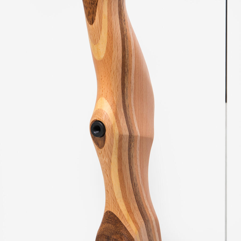 Πλήρες σετ τοξοβολίας αρχαρίων με ξύλινο τόξο, σχεδιασμένο για ΔΕΞΙΟΧΕΙΡΕΣ, έτοιμο για χρήση σε αποστάσεις έως 20 μέτρων.