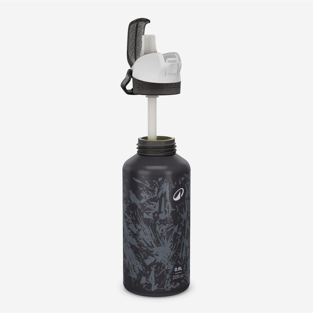 Kids’ 0.6L alu. water flask 500 with instant cap, pipette and straw, for hiking