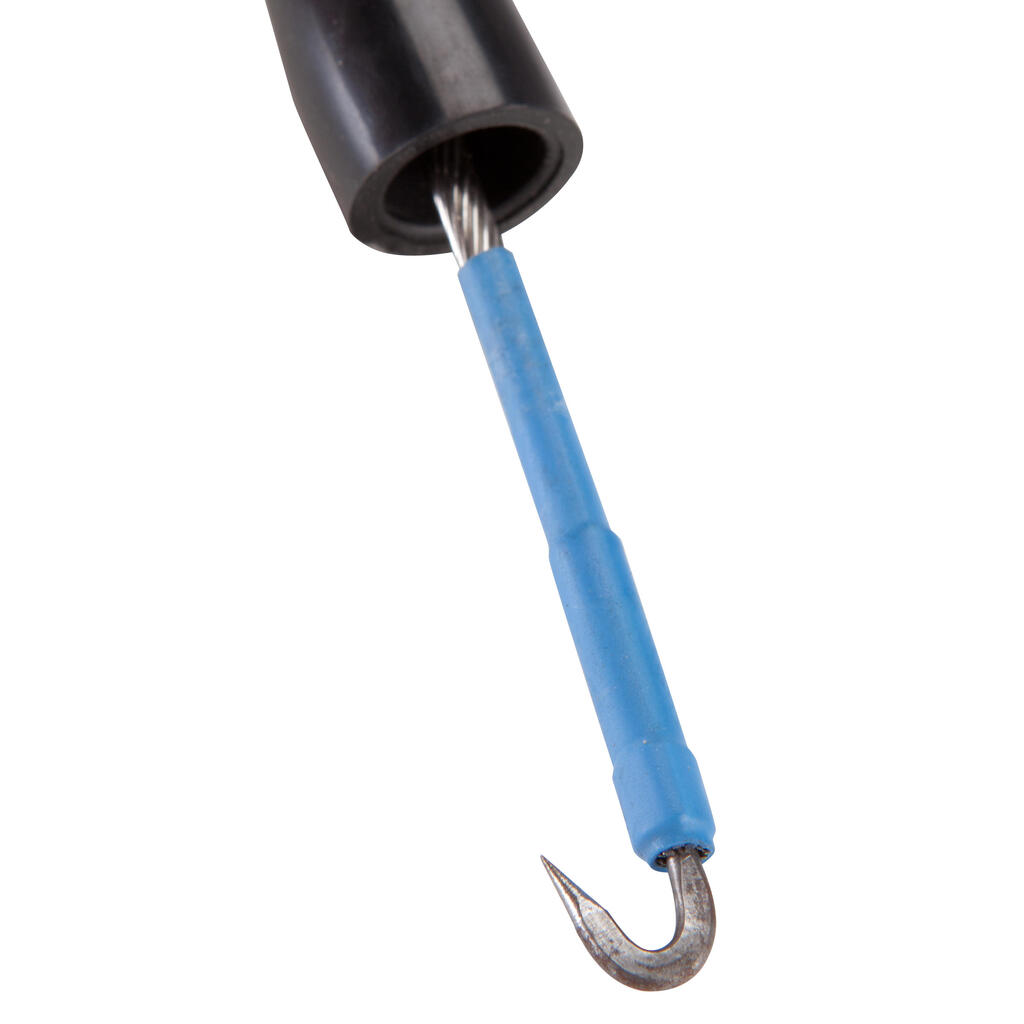 Semi-rigid cable hook for v-like channels. Protected by a retractable cap, its tip is so aggressive that it will be able to grab even the smallest piece of cord! Long enough to allow you to make V-threads channels with any length of ice screw. Can also be used for other kinds of natural threaded channels .Semi-rigid and very lightweight, it won't get in your way. Brightly coloured sheath will help you to see what you're doing while you are making your V-like channel.