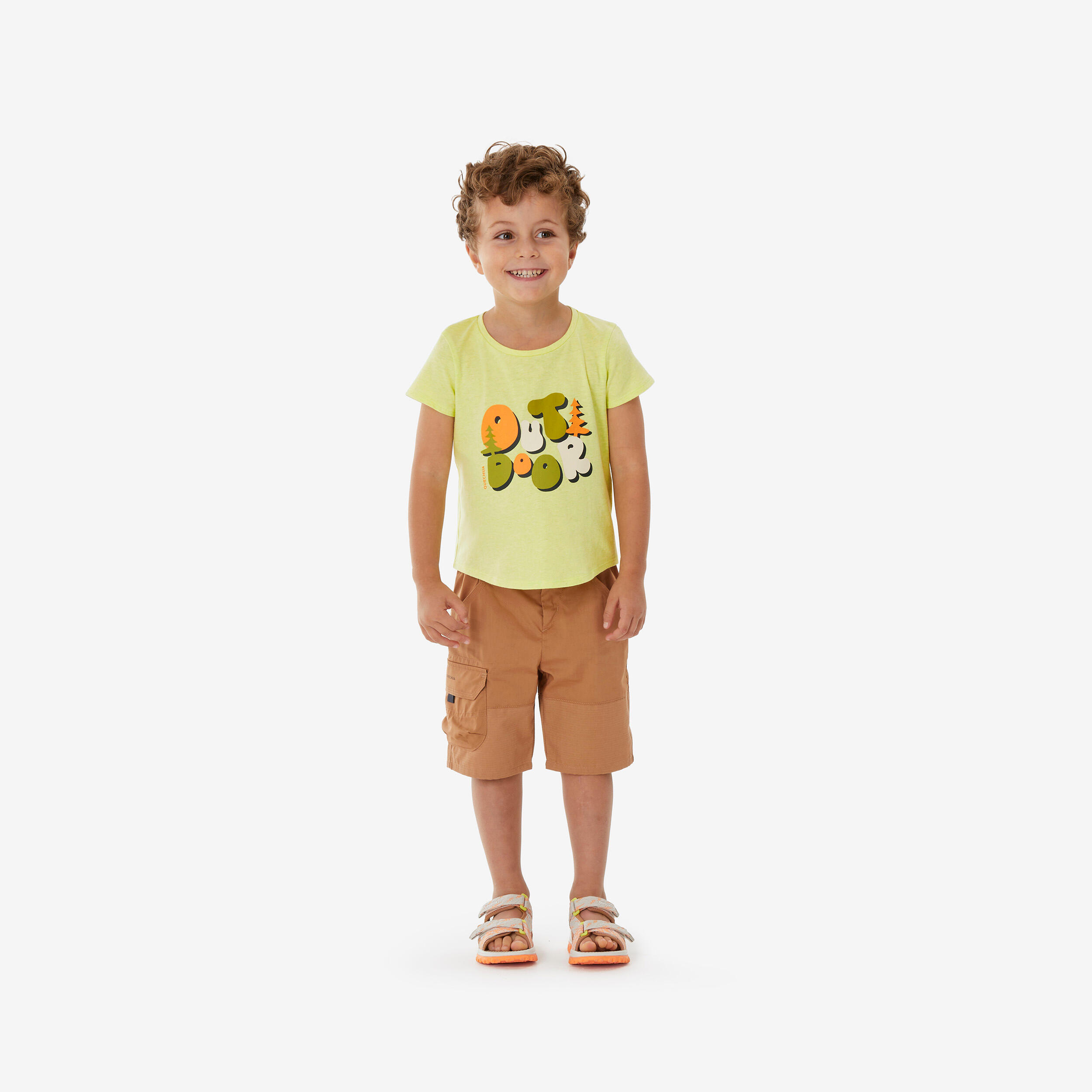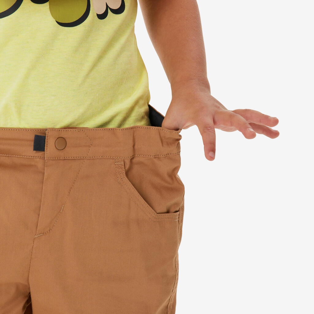 Adjustable waist according to the child’s body shape thanks to the elasticated waistband. 2 hand pockets, 1 side pocket with fastening.