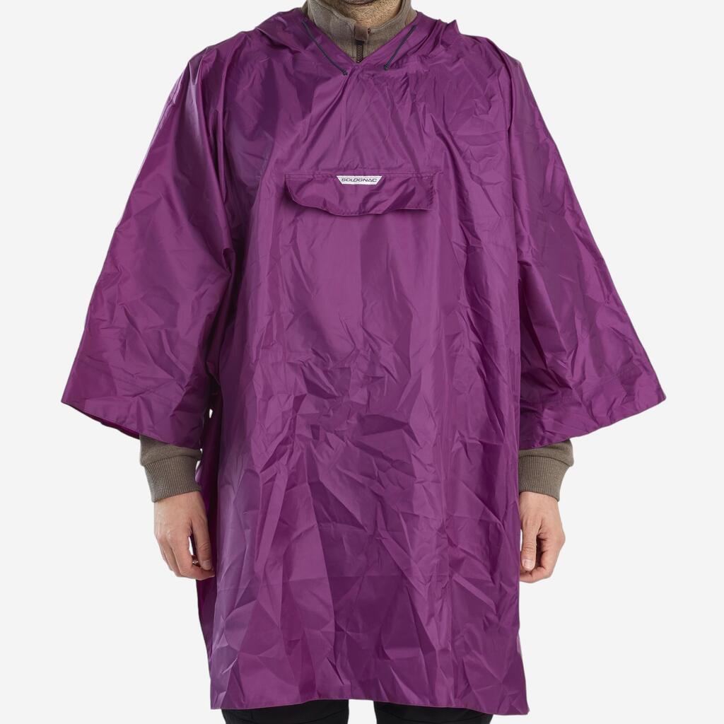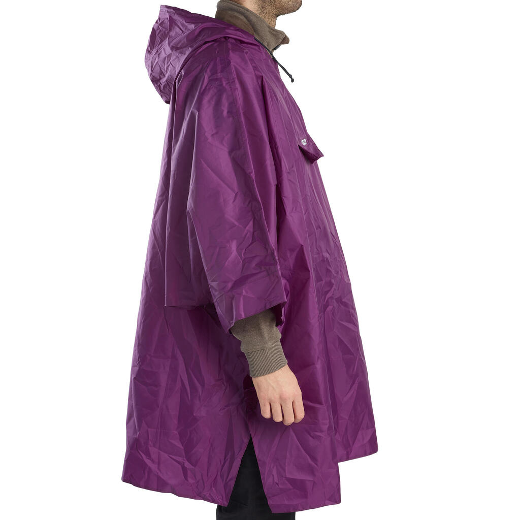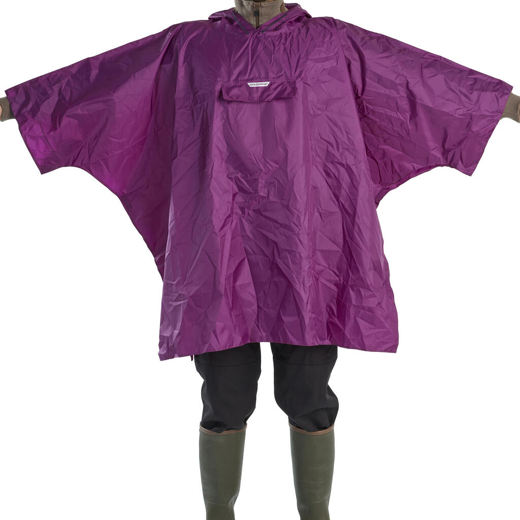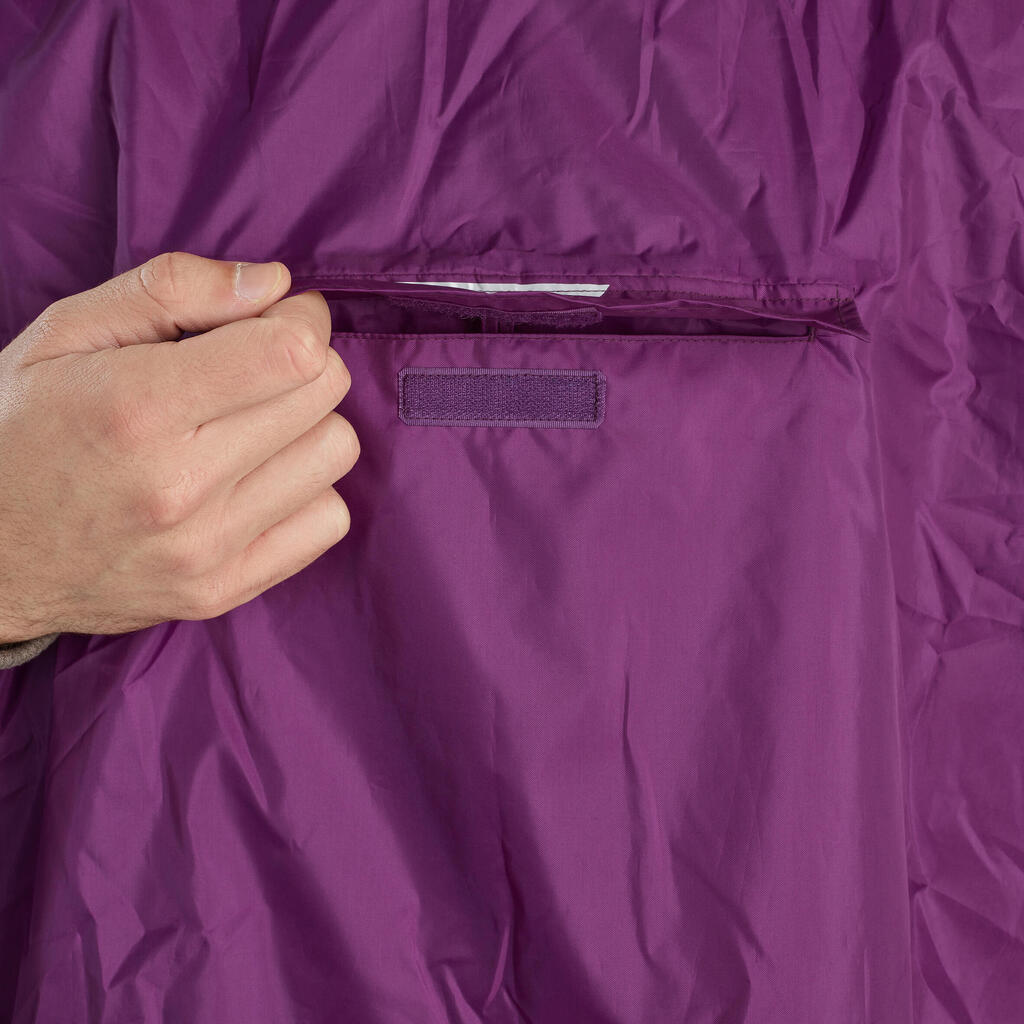 Thanks to its loose-fitting design, this poncho can be worn over your jacket or a jumper, as well as over a small (20 litre) backpack. It will cover you from head to upper leg, and the drawstrings make it easy to adjust the hood to fit your head. When the rain stops, you just need to store this poncho in its own front pocket. Here are the pocket dimensions: 23.5 cm x 20 cm