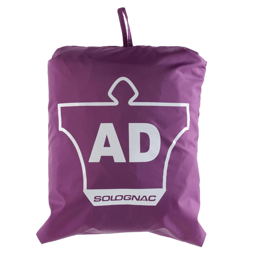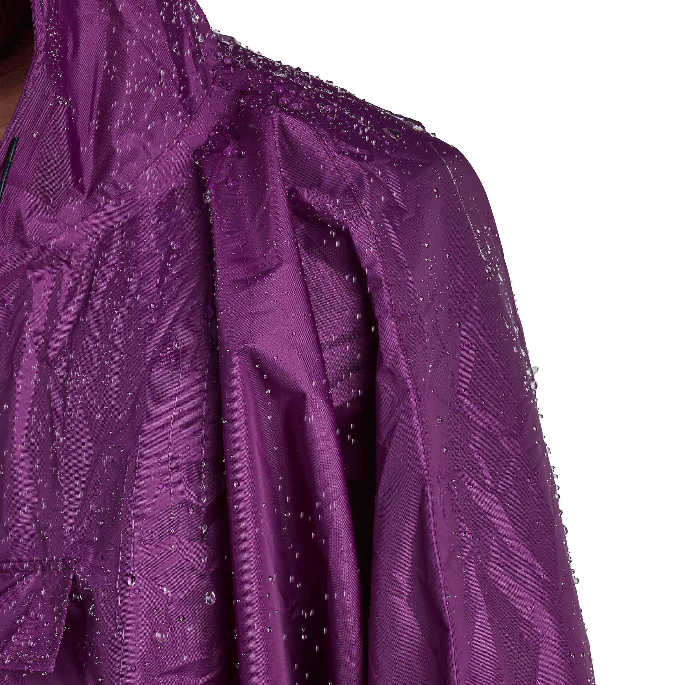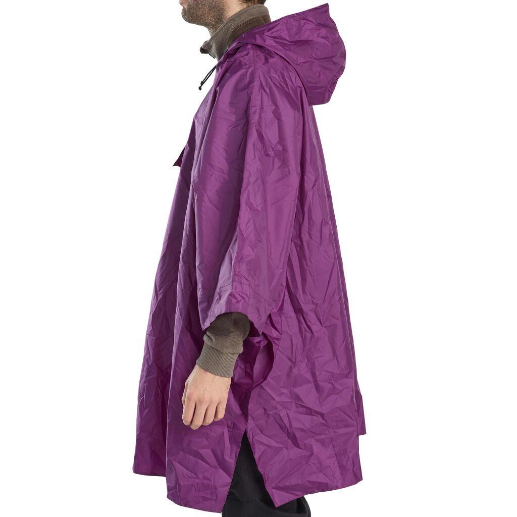 Thanks to its loose-fitting design, this poncho can be worn over your jacket or a jumper, as well as over a small (20 litre) backpack. It will cover you from head to upper leg, and the drawstrings make it easy to adjust the hood to fit your head. When the rain stops, you just need to store this poncho in its own front pocket. Here are the pocket dimensions: 23.5 cm x 20 cm