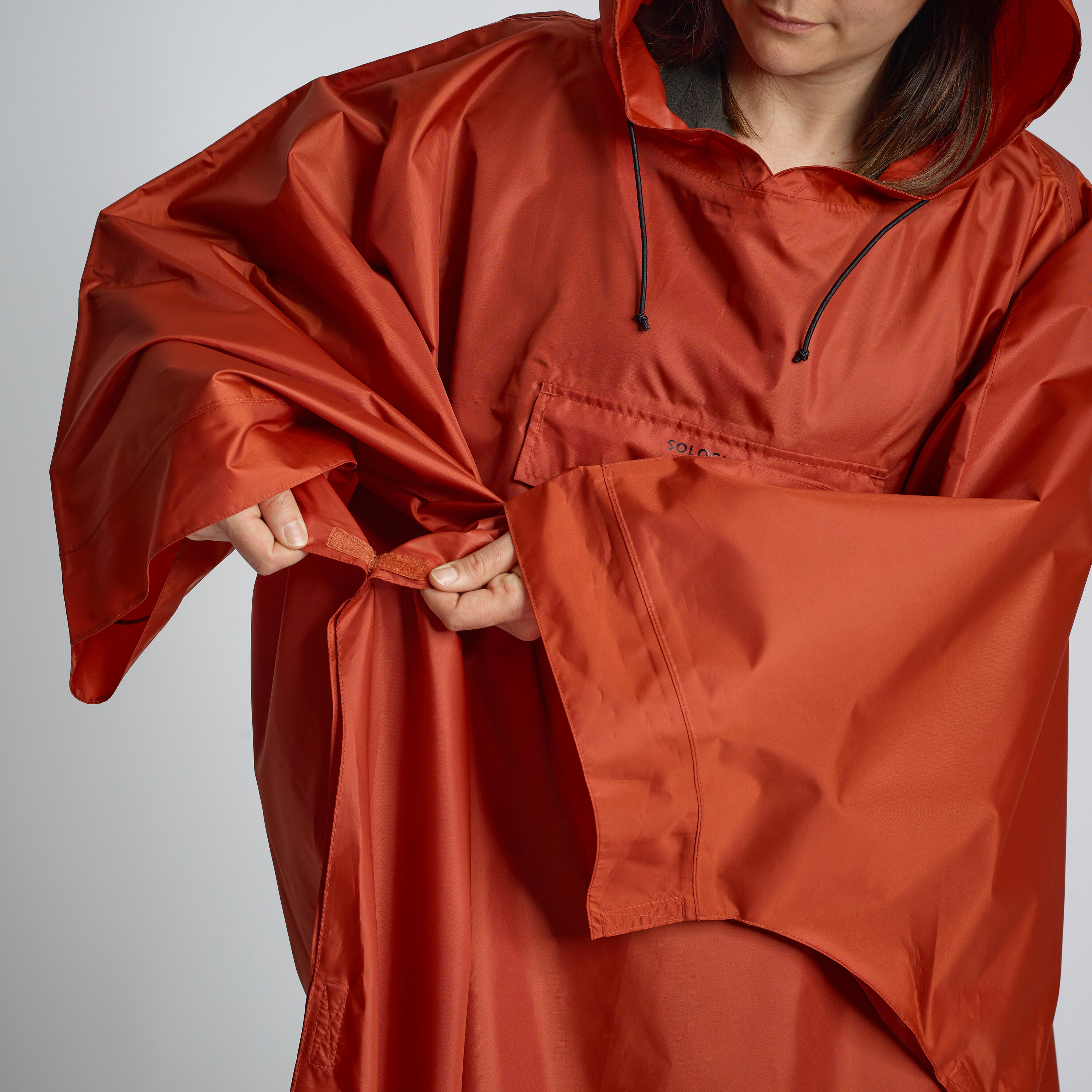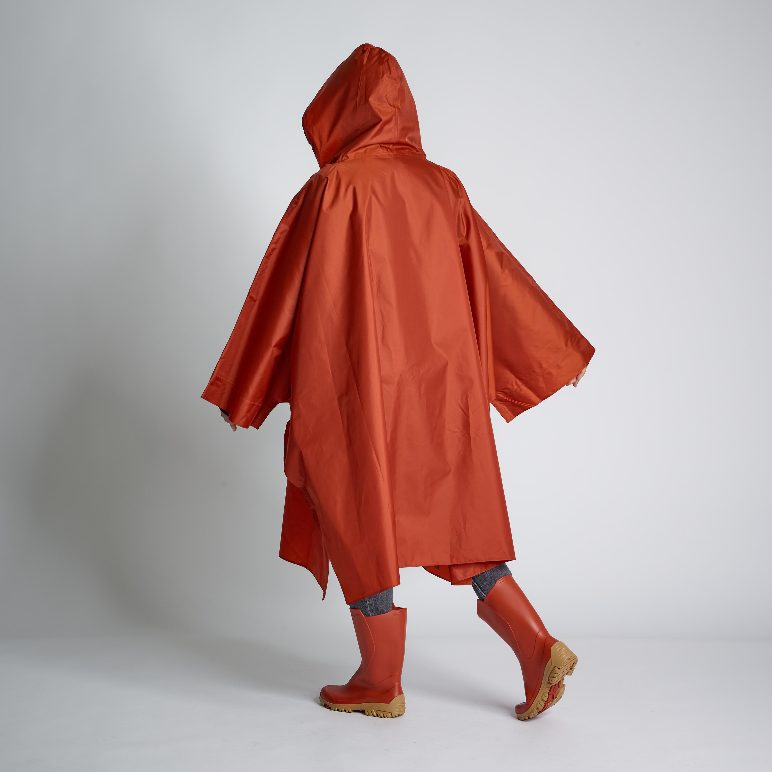 Thanks to its loose-fitting design, this poncho can be worn over your jacket or a jumper, as well as over a small (20 litre) backpack. It will cover you from head to upper leg, and the drawstrings make it easy to adjust the hood to fit your head. When the rain stops, you just need to store this poncho in its own front pocket. Here are the pocket dimensions: 23.5 cm x 20 cm