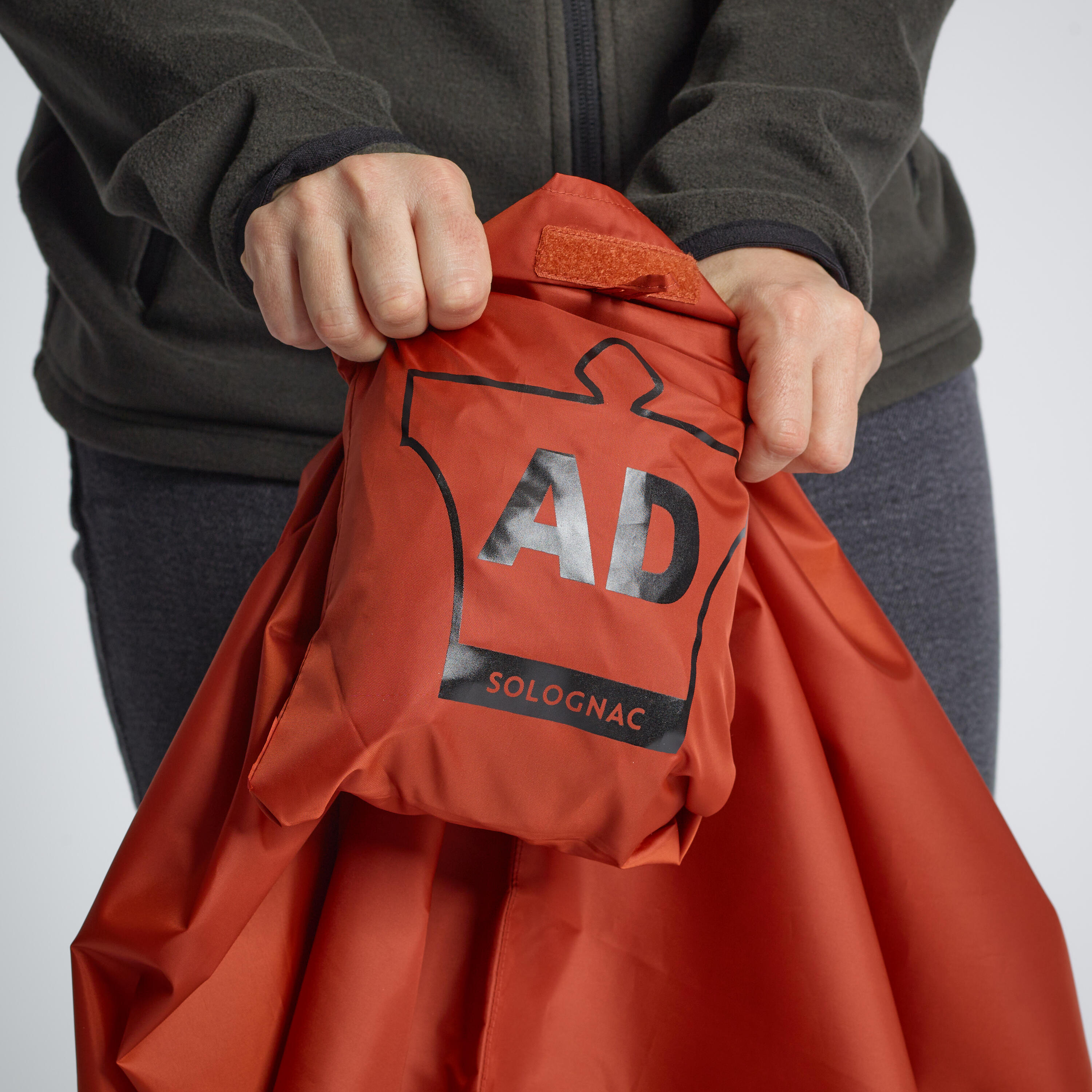 With a waterproof rating of 1000 Schmerber (=1000 mm), this poncho will provide you with protection from light rain when on hunting expeditions or enjoying the outdoors. In practical terms, during testing, we measure a fabric's resistance to a water column, in mm (based on the ISO 811 standard). Our component can withstand the pressure of a 1000 mm column of water, approximately equivalent to a rain shower lasting 1 hour. So, even if rain crashes your shooting party, you’ll stay dry.