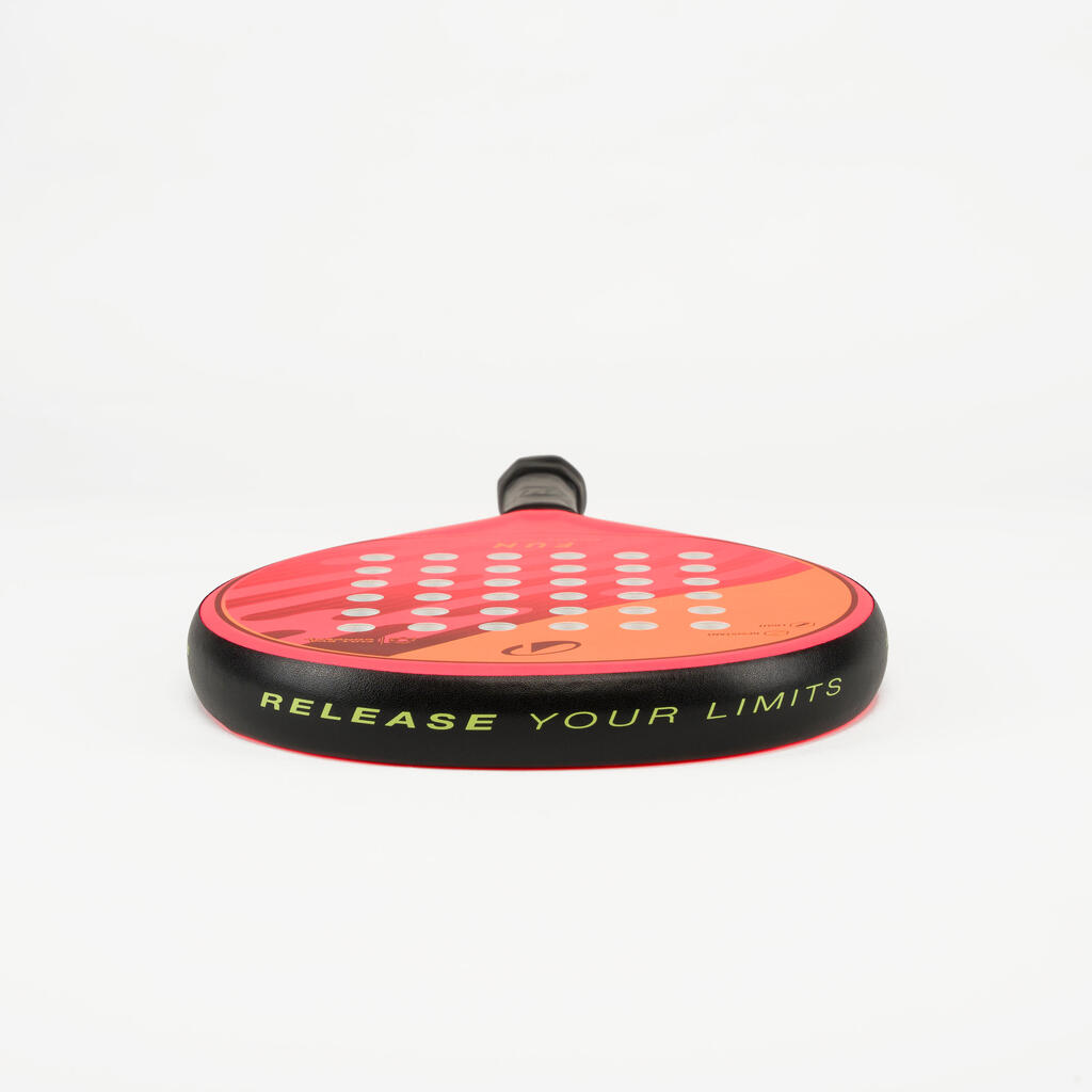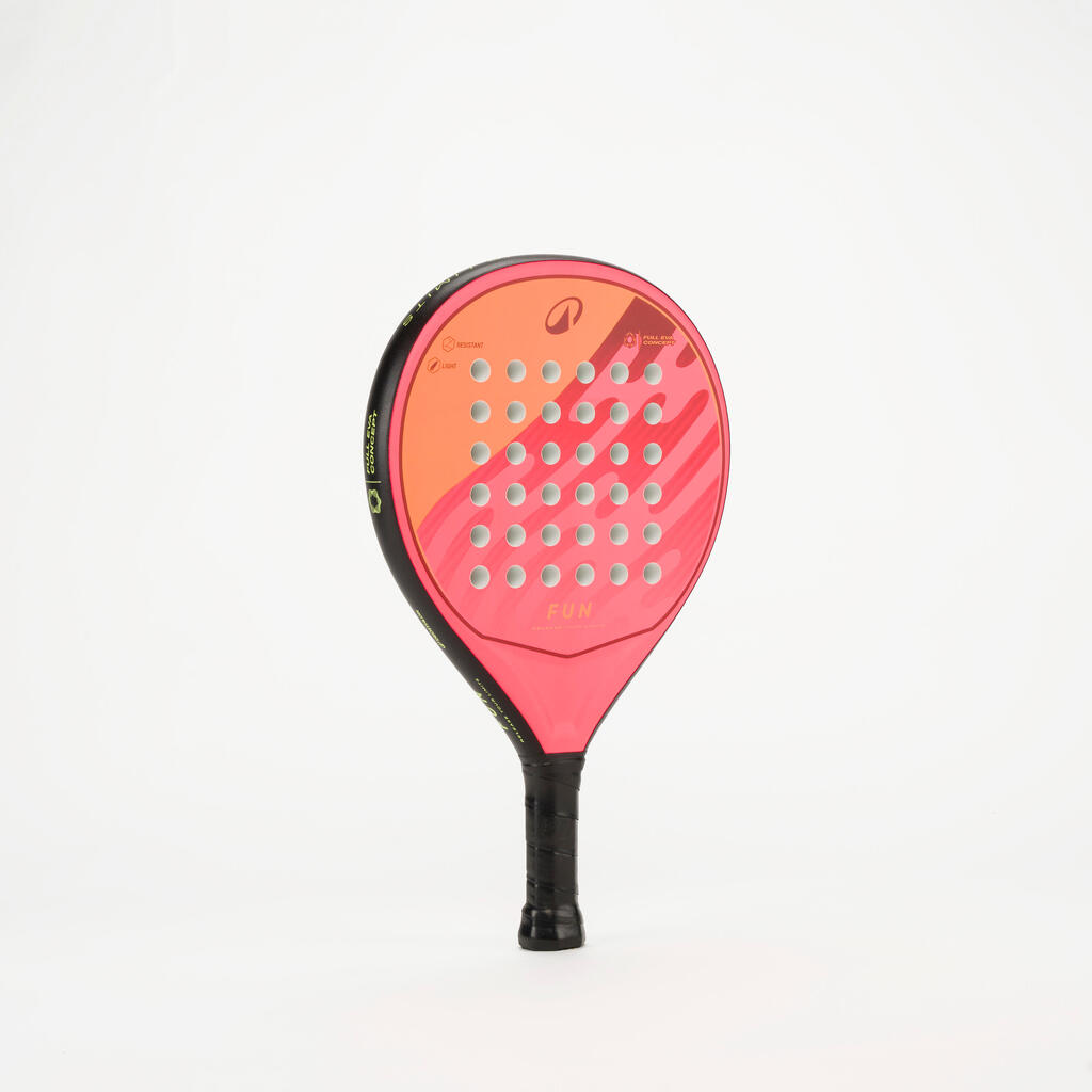 This innovation is exclusive to Decathlon.The racket is made from a single piece of EVA foam covered with a composite fibre surface. The larger EVA foam surface increases the head's sweet spot and therefore makes it more forgiving of centring errors, resulting in better ball control.