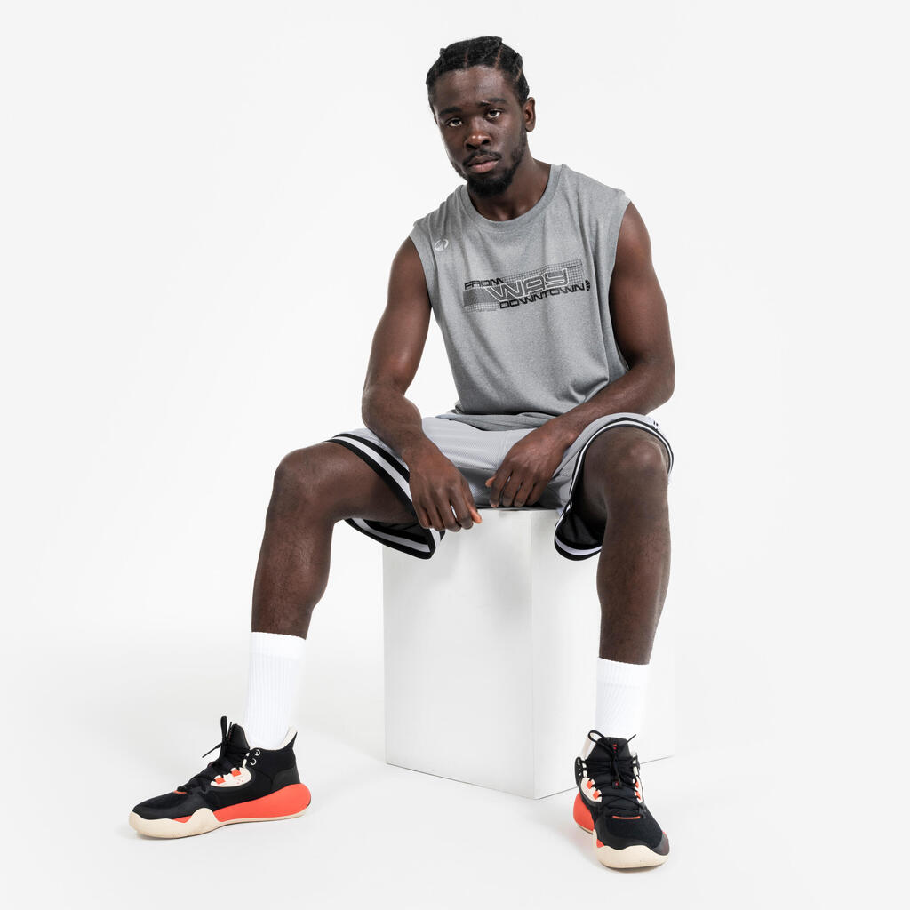 This basketball T-shirt's synthetic fabric (100% polyester) ensures good perspiration wicking (4 stars out of 5 according to normal laboratory standards) to prevent perspiration from staying on the surface of the skin.