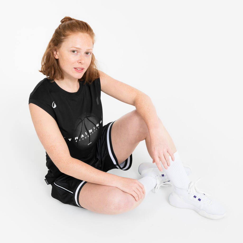 This basketball T-shirt's synthetic fabric (100% polyester) ensures good perspiration wicking (4 stars out of 5 according to normal laboratory standards) to prevent perspiration from staying on the surface of the skin.