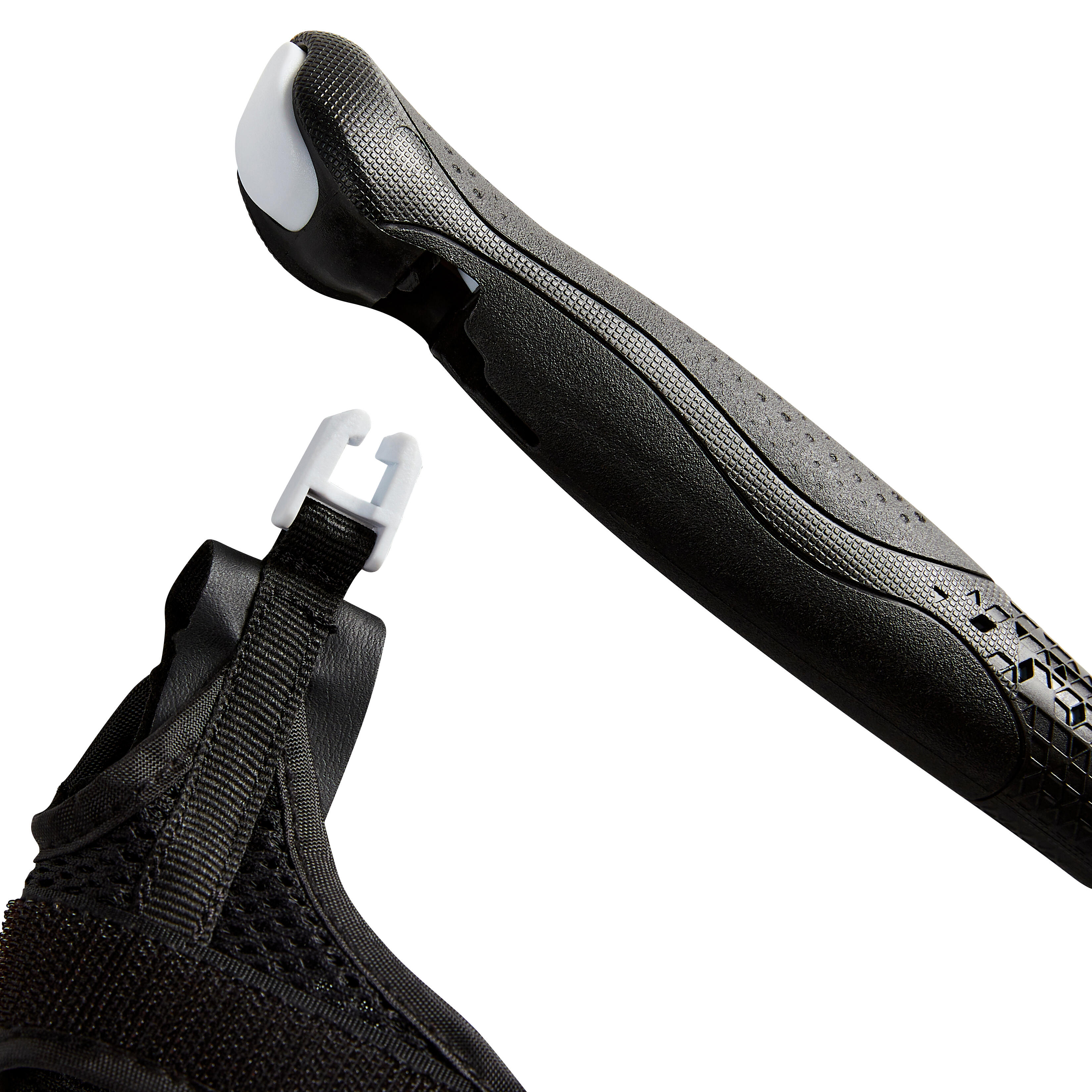 1. In order to unmould the tips more easily, the product used leaves a soft film on the inside. To avoid losing the tip, simply put a little dust inside to remove the oil and the tip will fit securely on the end.2. The attachment for fastening the gauntlet at the handle has a direction. There is a flat side and one side with bevelled angles.Ensure the side with the bevelled angles is pointing upwards or put the gauntlets on your hands before clipping them to the pole.