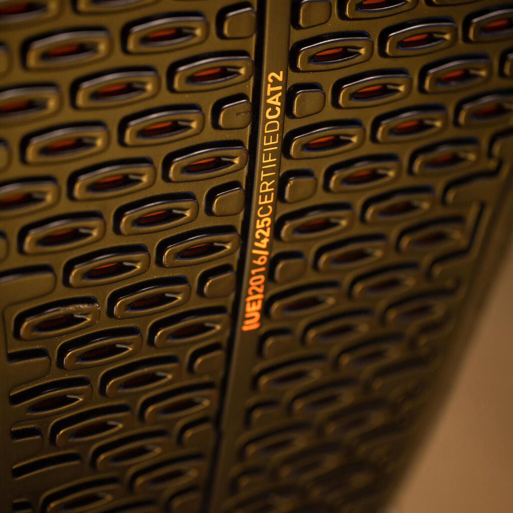 Regulation (EU) 2016/425 is a regulation that applied to body protection equipment. This back protector has been tested for shock absorption using impact tests in accordance with the EN1621-2 level 1 standard.