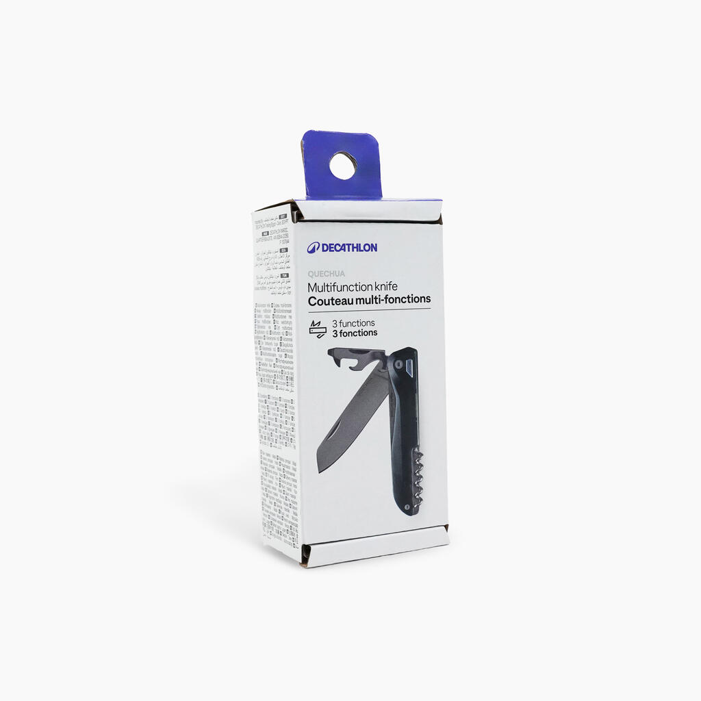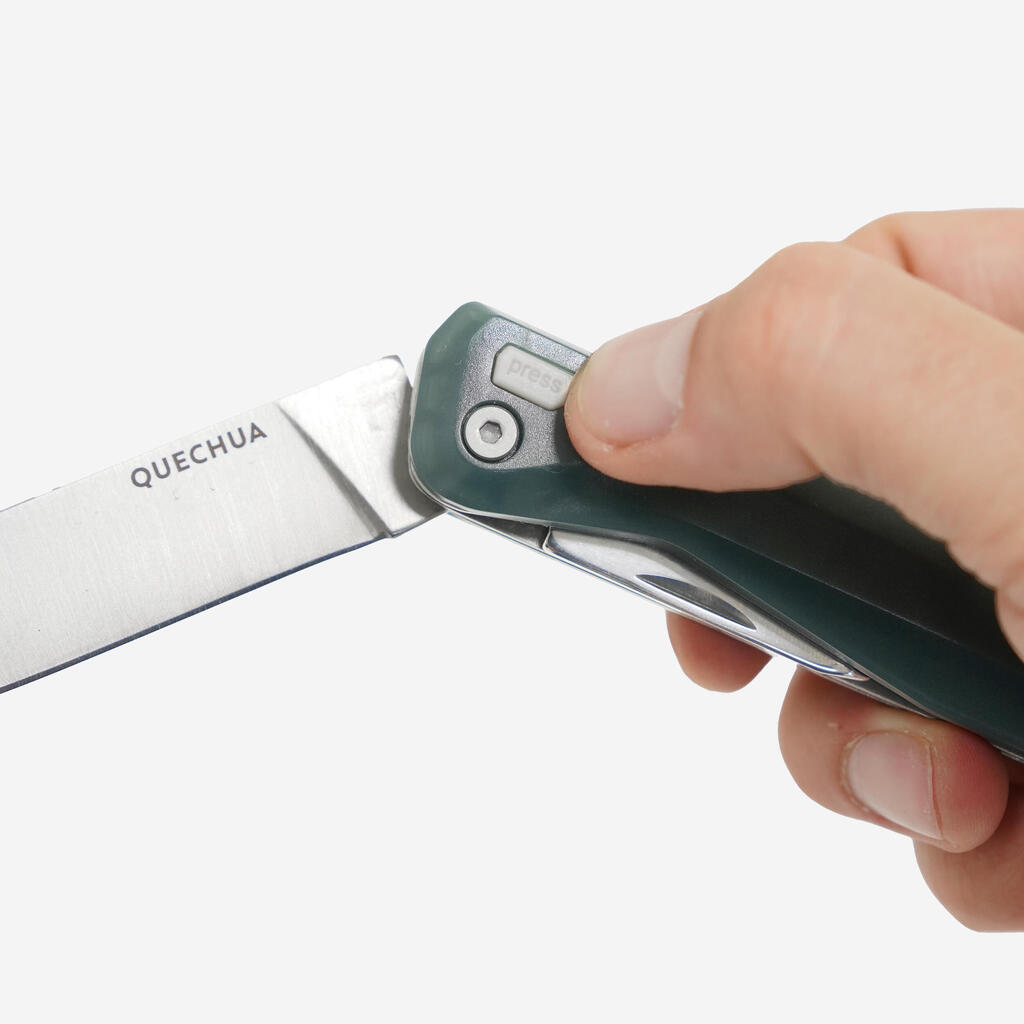 Use our safe 5-tool knife (blade, tin-opener, bottle-opener, screwdriver, corkscrew) for your picnics and camping feasts in nature. We've made it extra safe with a blade locking system.