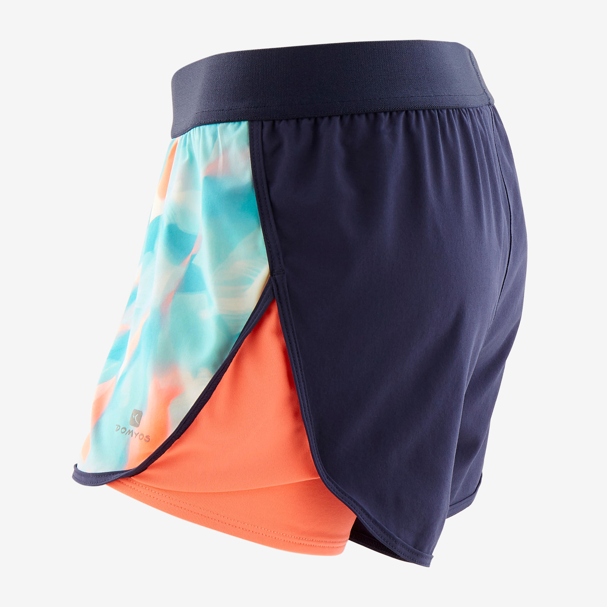 Girls' 2-in-1 Breathable Multisport Shorts - Blue & Coral