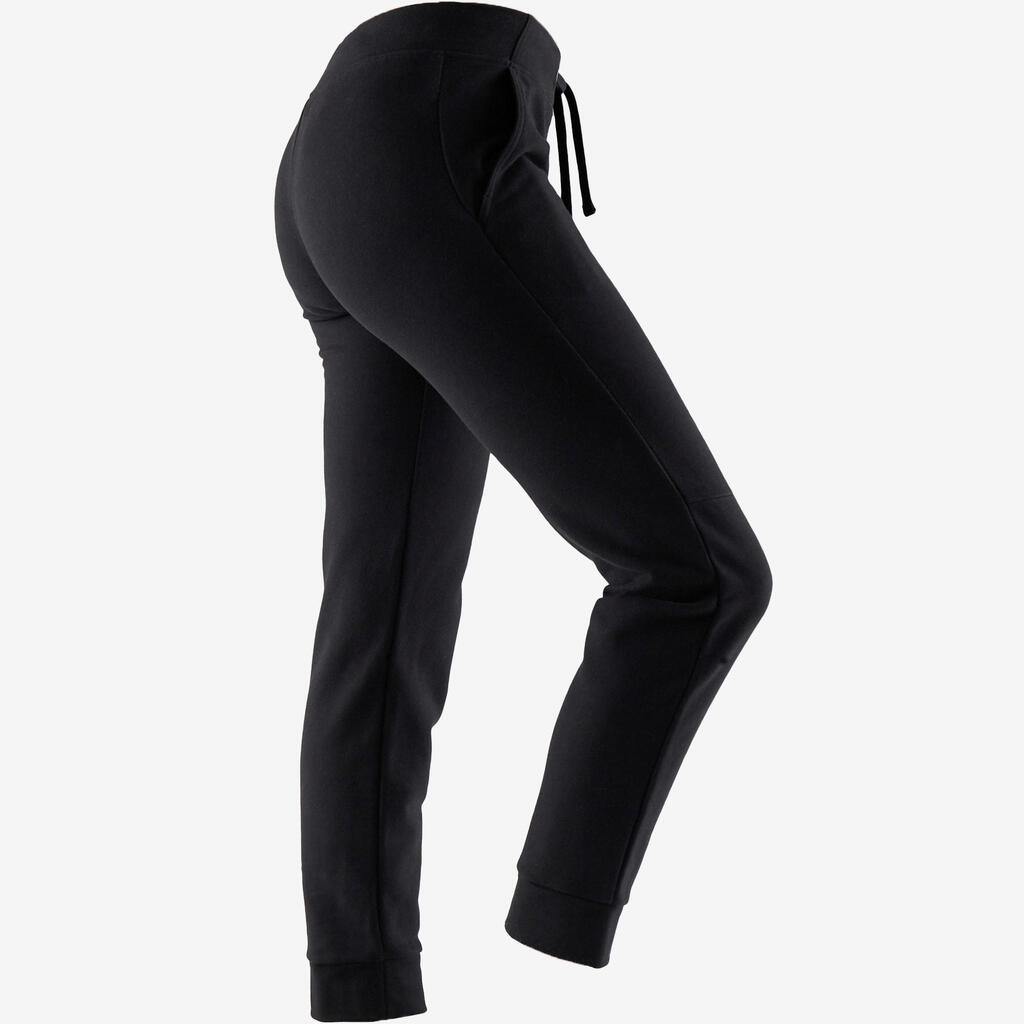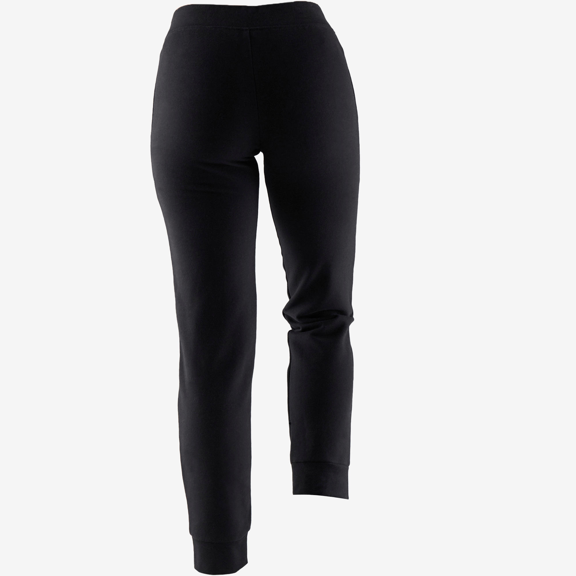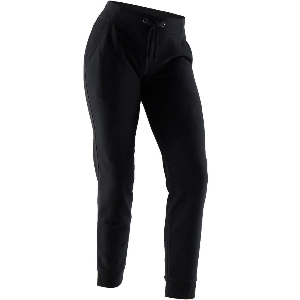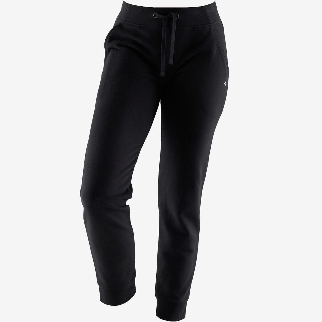 Women's Straight-Cut Cotton Jogging Fitness Bottoms With Pocket 500 - Black
