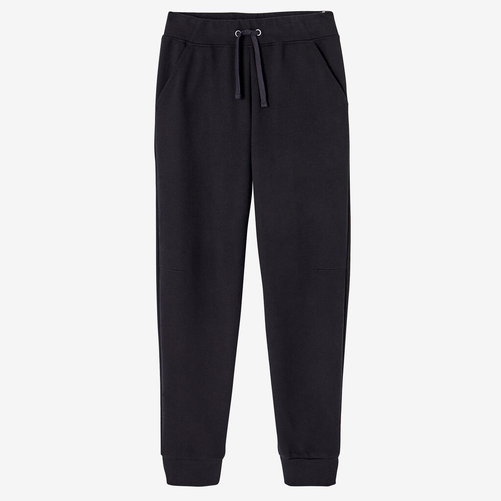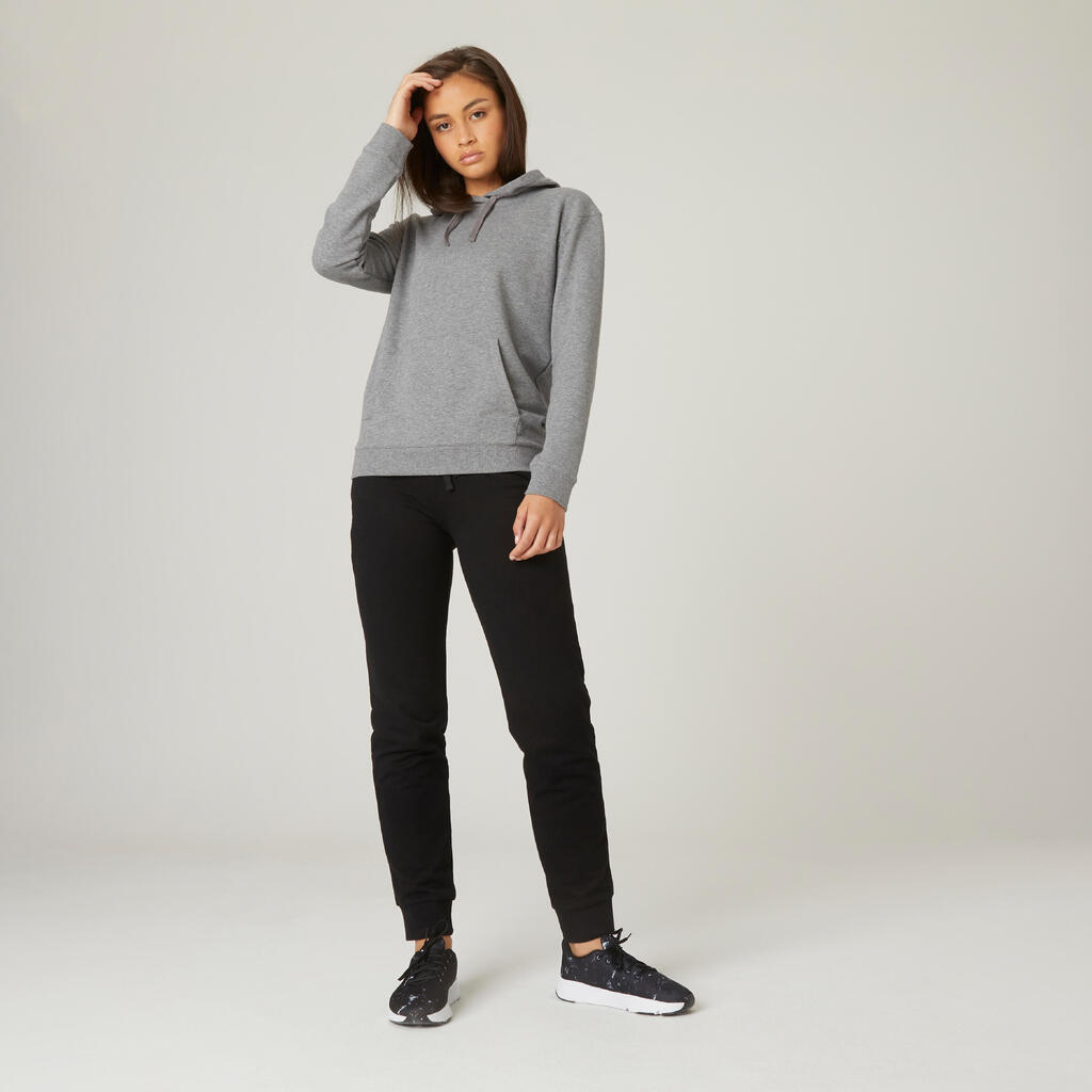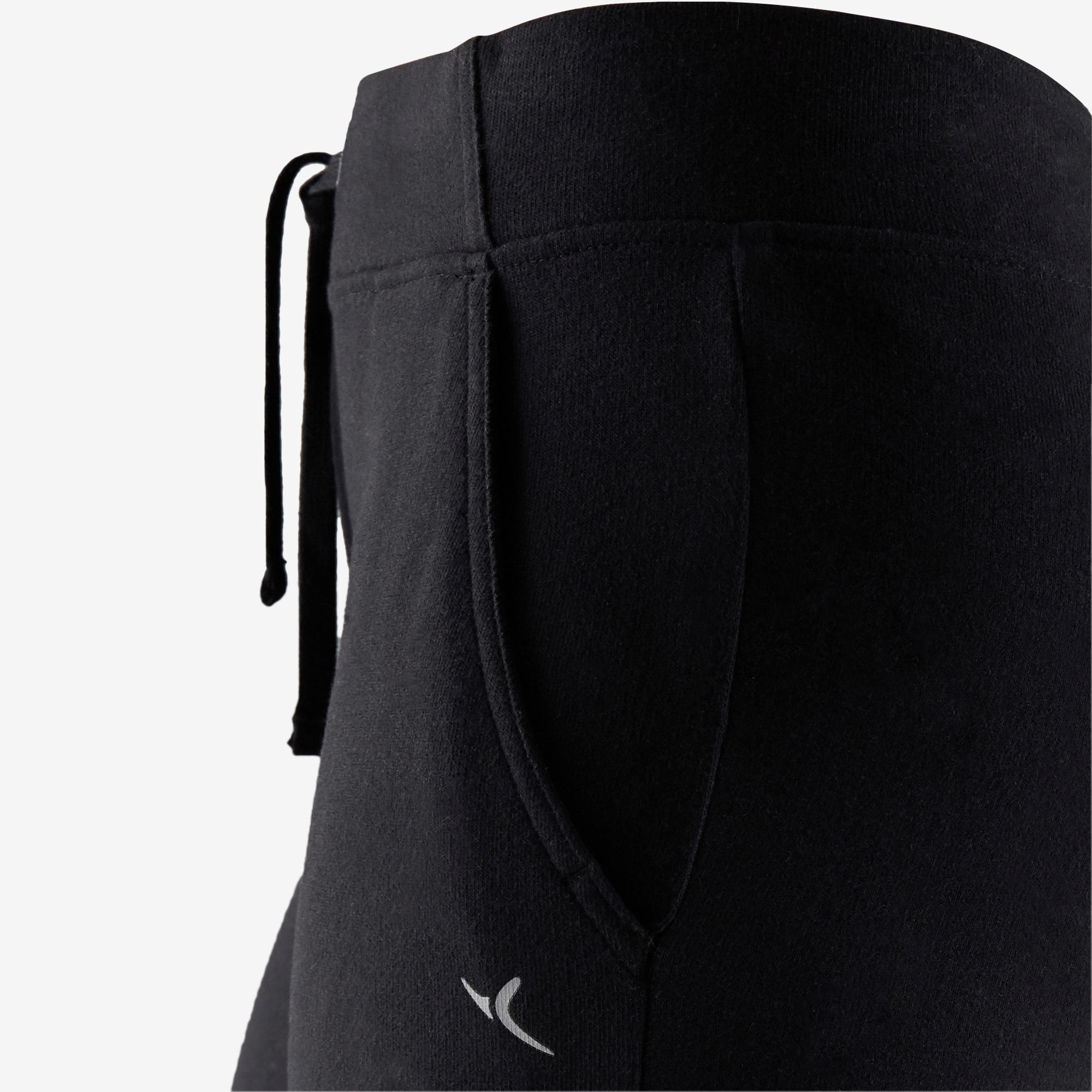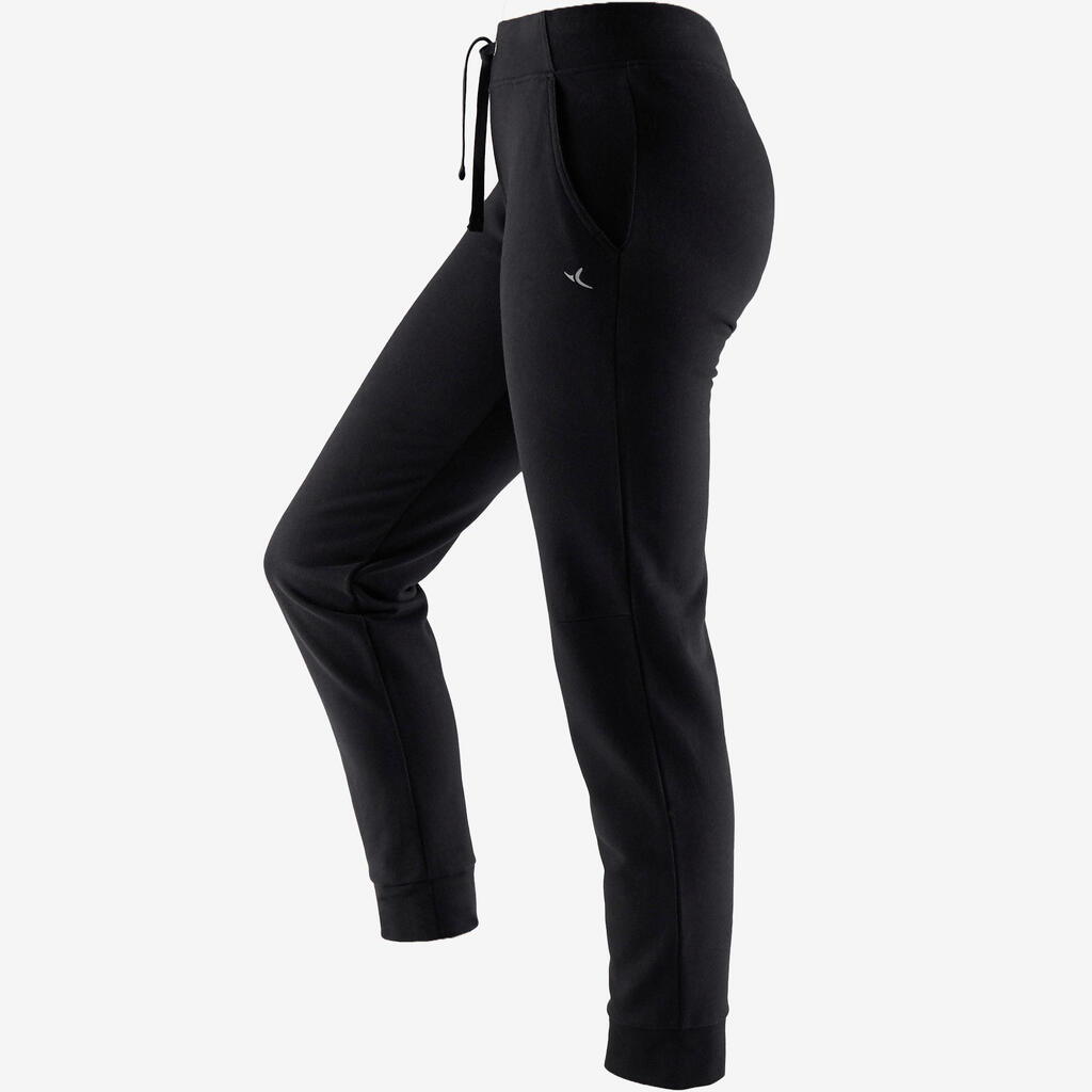 Women's Straight-Cut Cotton Jogging Fitness Bottoms With Pocket 500 - Black