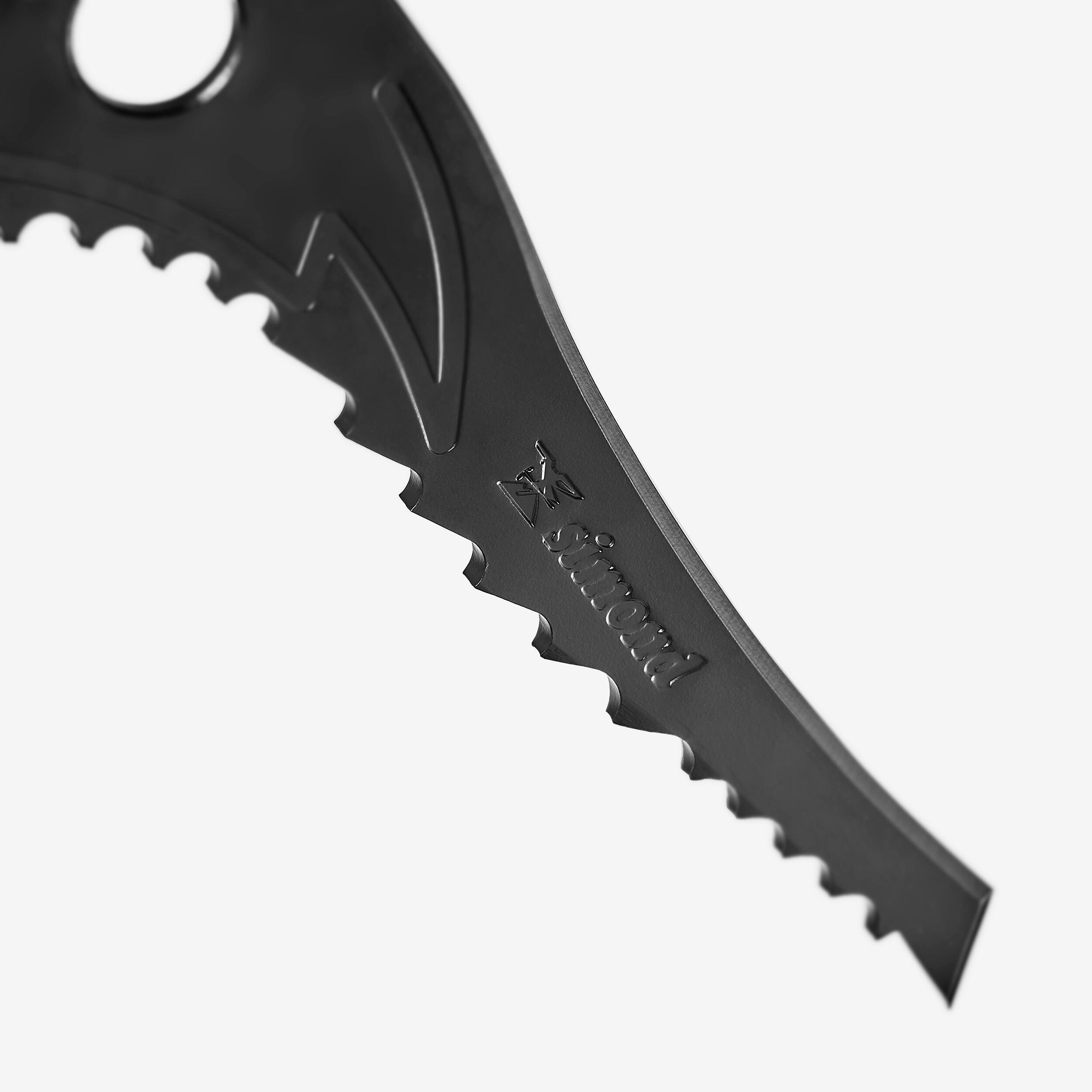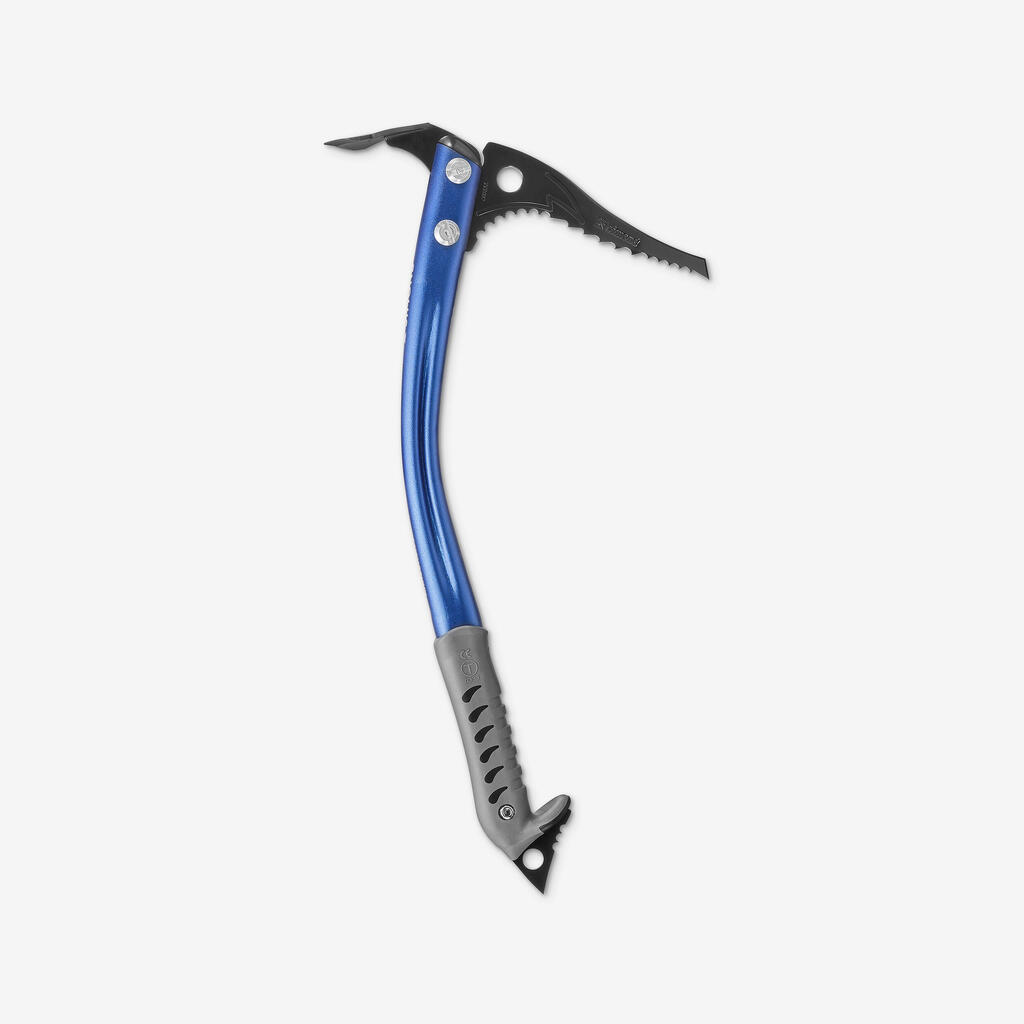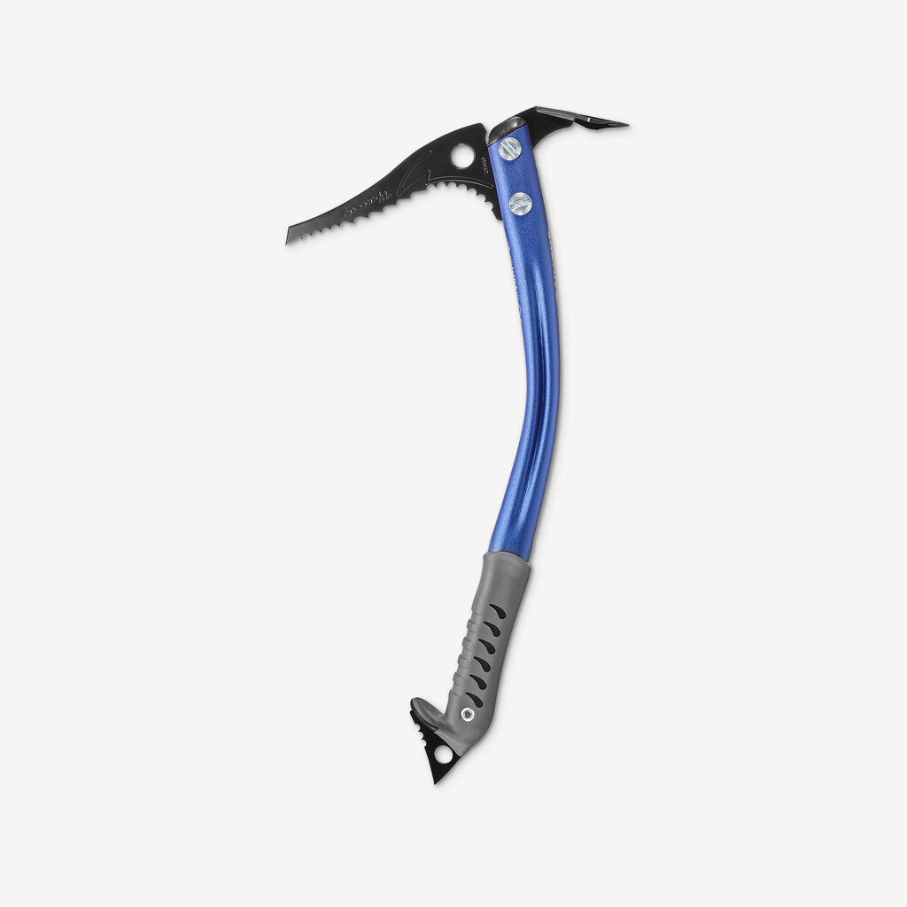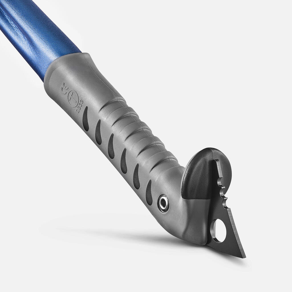 - Hardened steel banana shaped pick, effective in packed snow and ice.