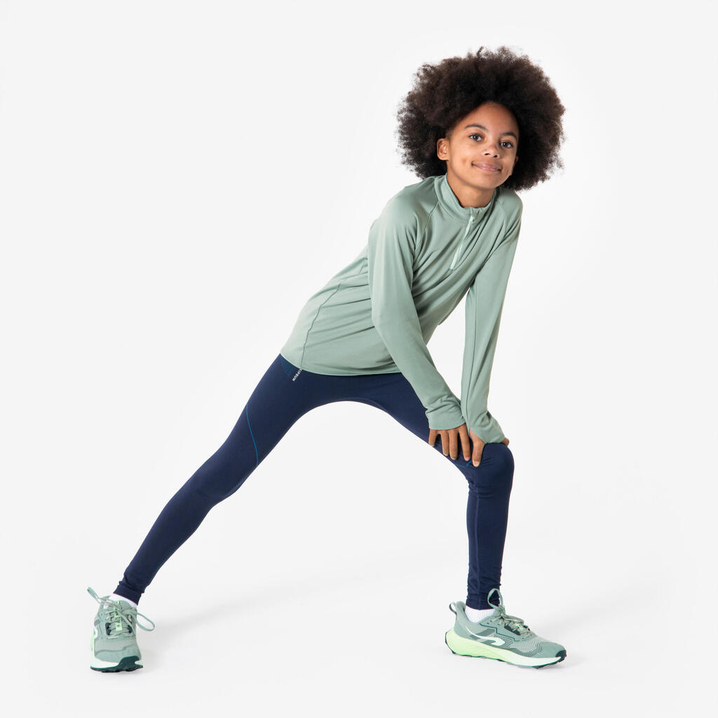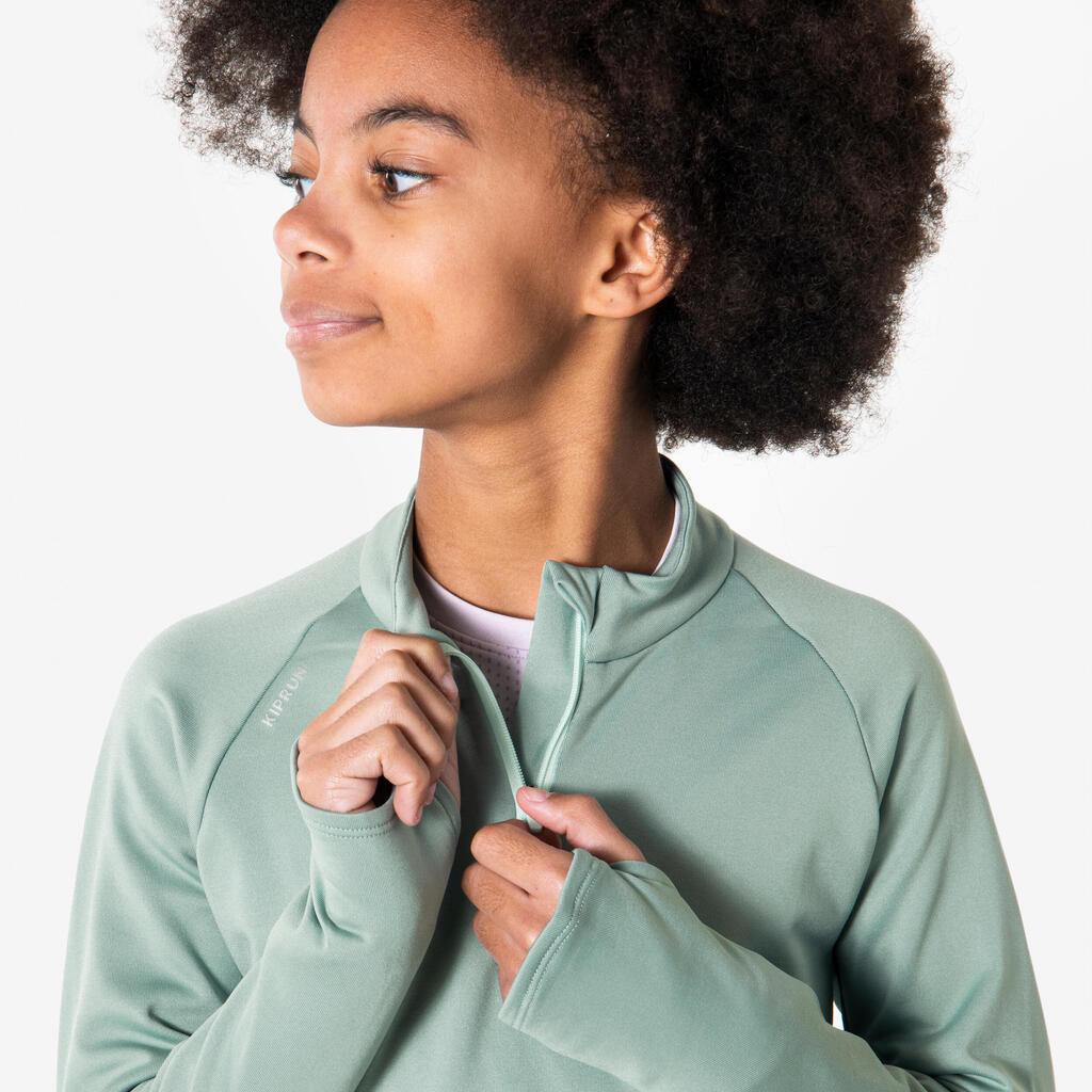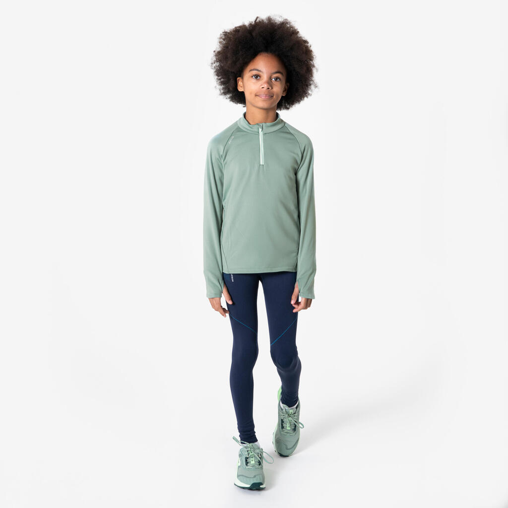 Warm 100 Children's Long-Sleeved Warm 1/2 Zip Running T-Shirt-Green
