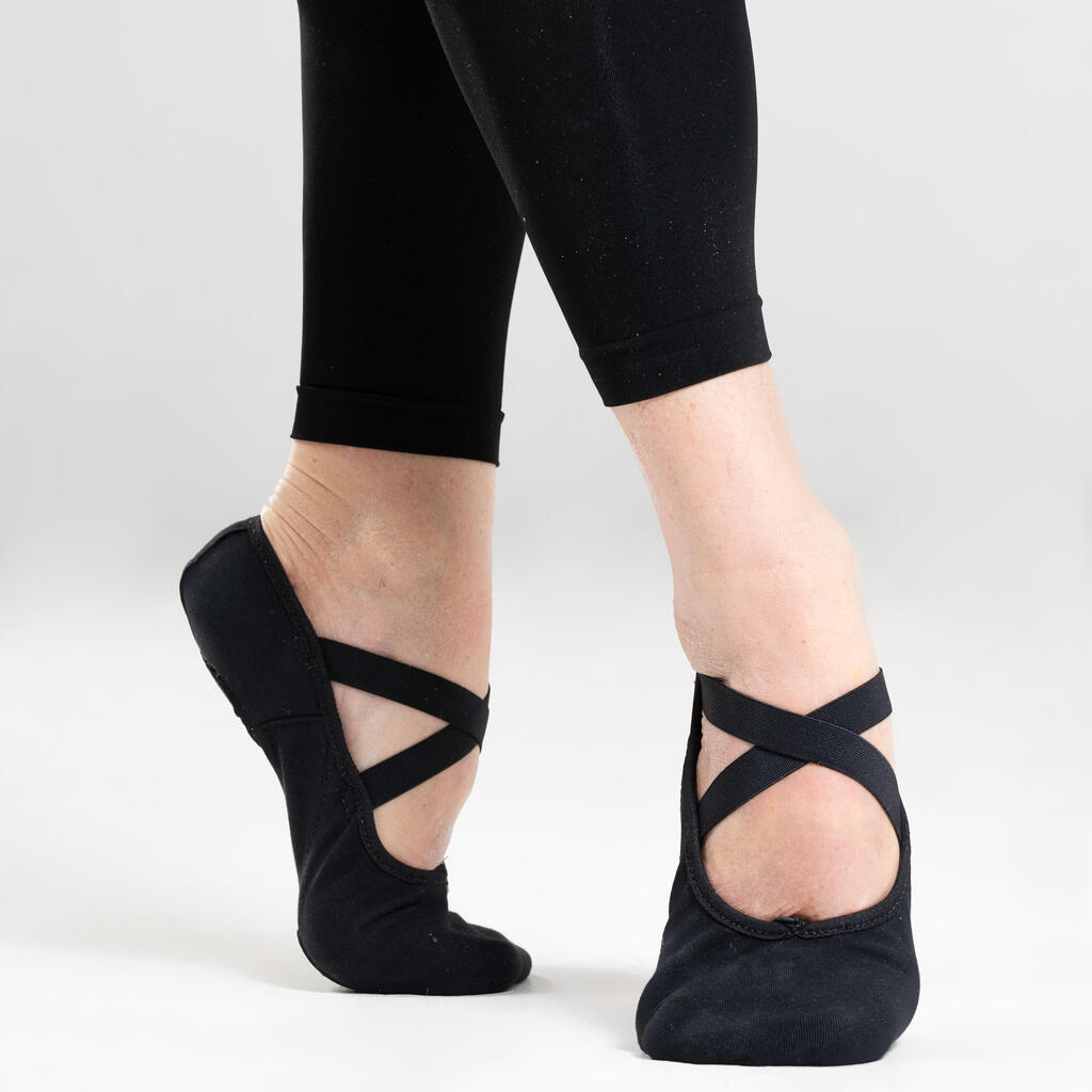 If you're looking for supple demi-pointe shoes that fit the shape of your foot, opt for those in stretch canvas. This stretchy fabric allows for proper foot movement and highlights the instep. The split soles are made of leather for durability.