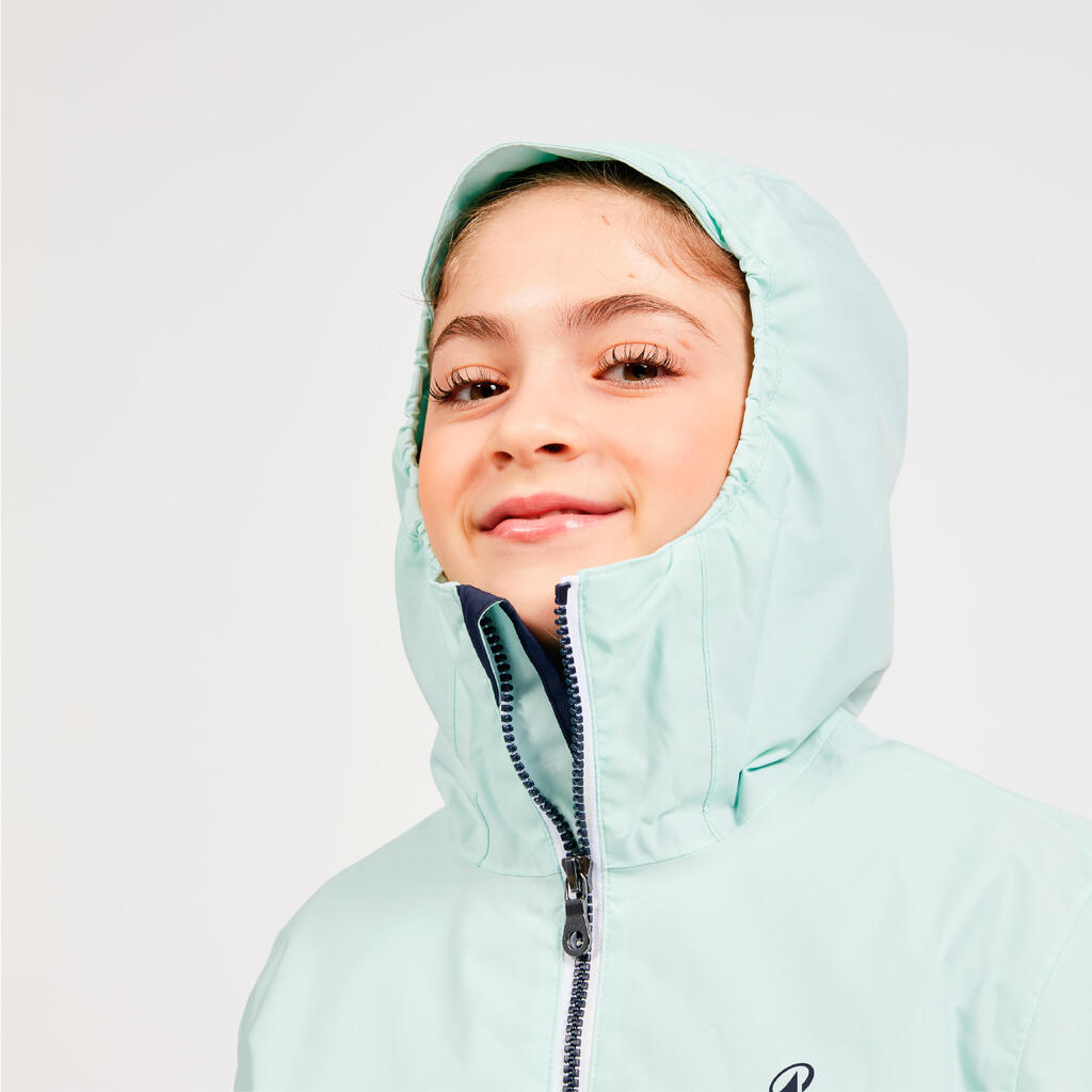 A zip on the entire jacket length with an interior flap protects against the wind and water.