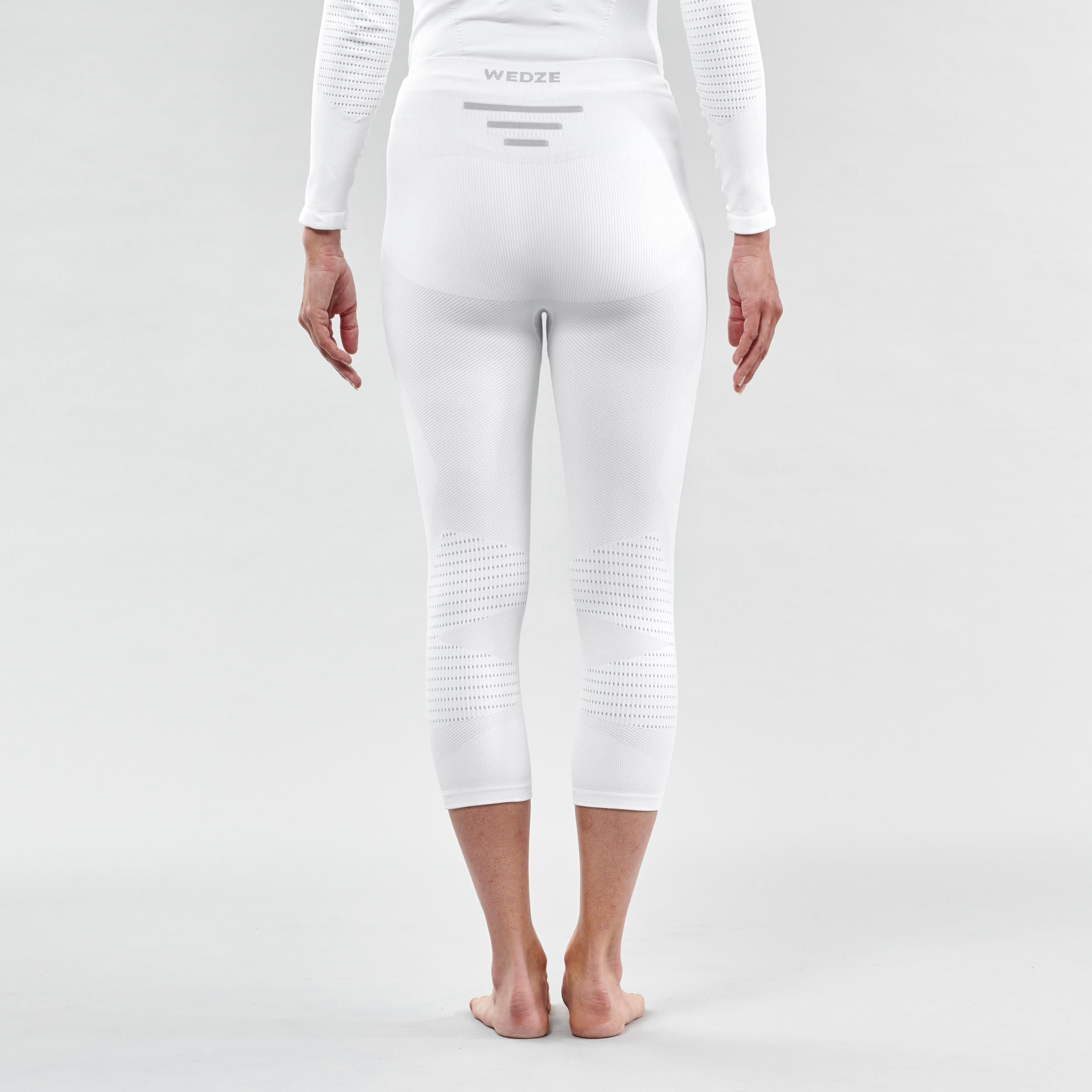 They stop below the knee to avoid overlapping layers (socks + base layer) creating folds in the ski boot, which may affect your comfort.