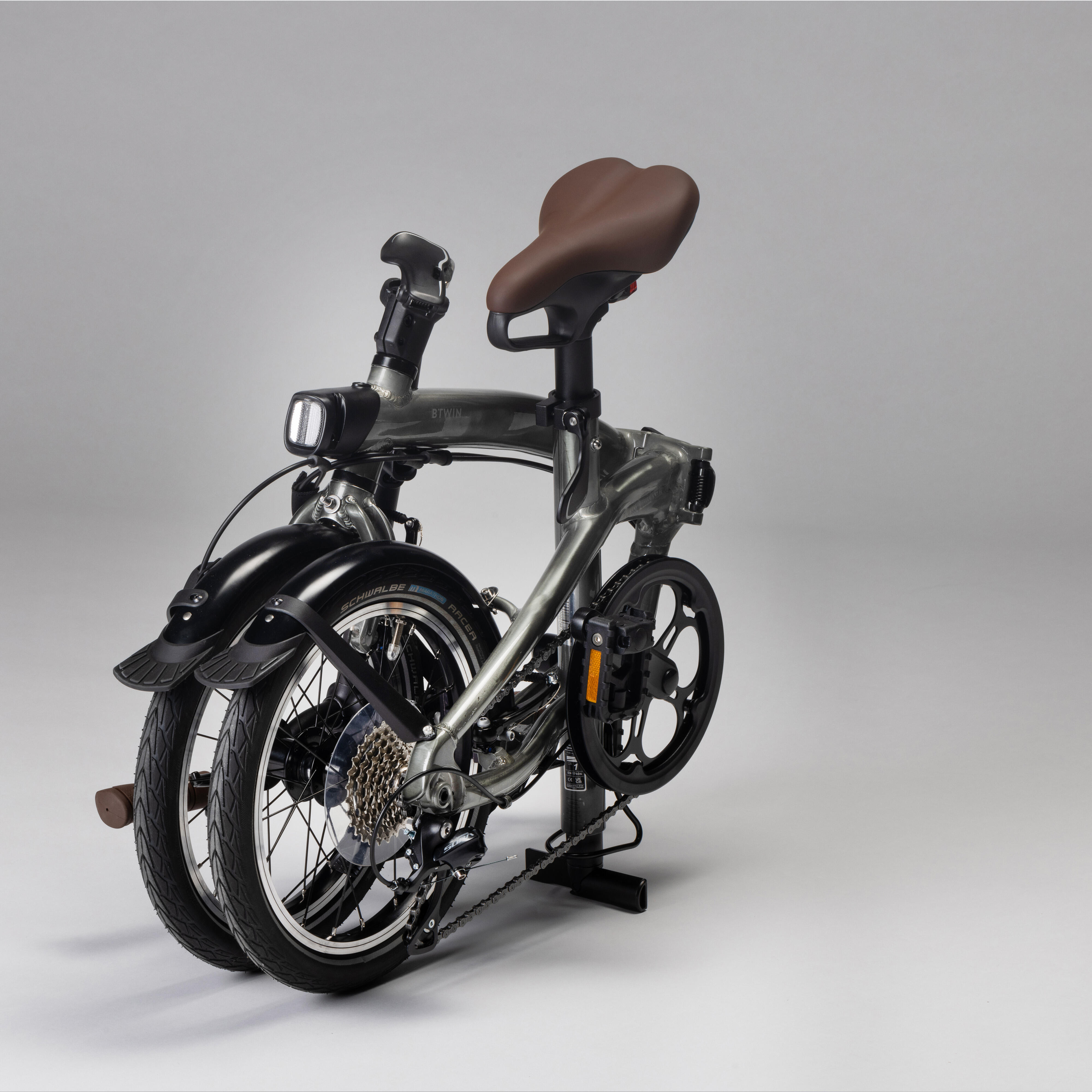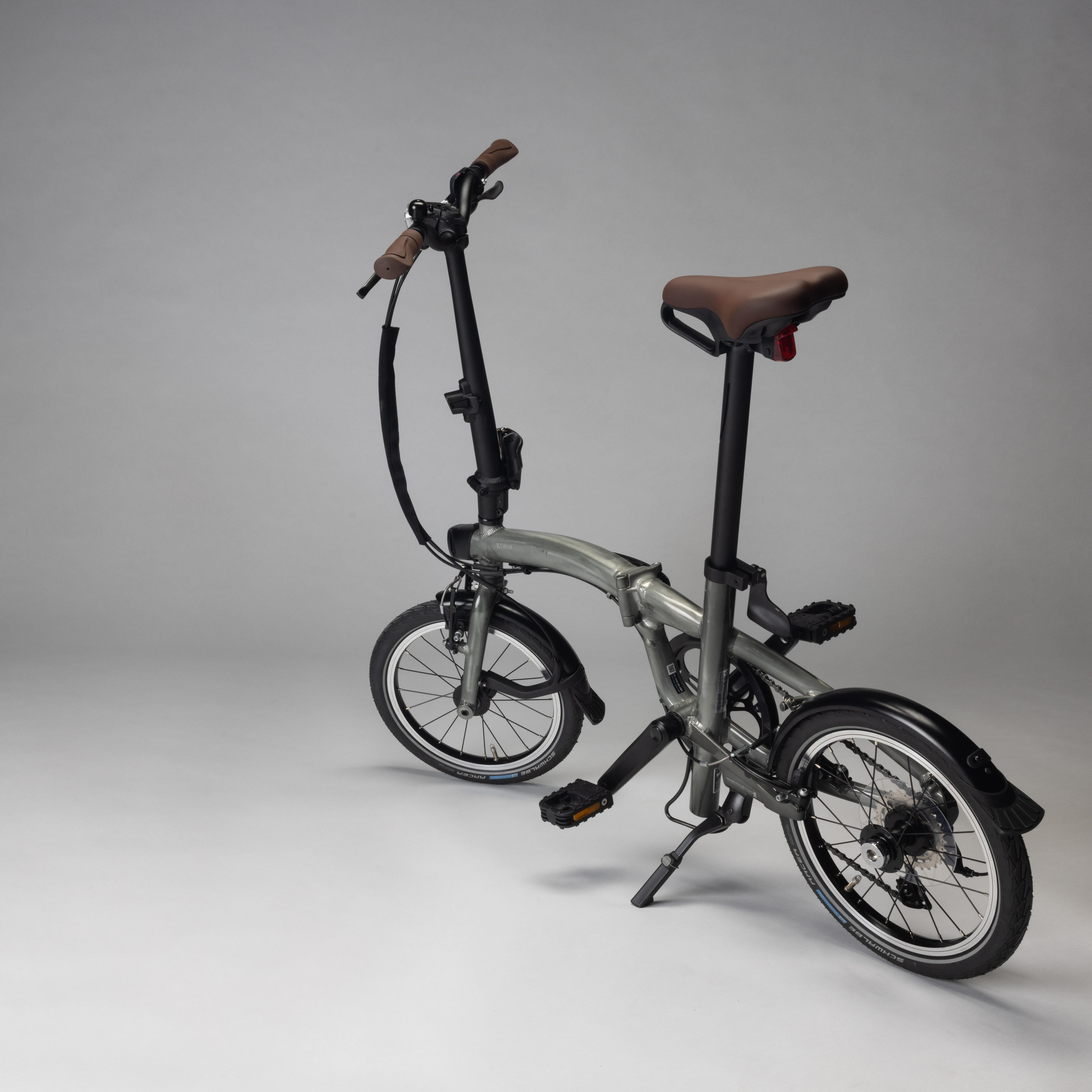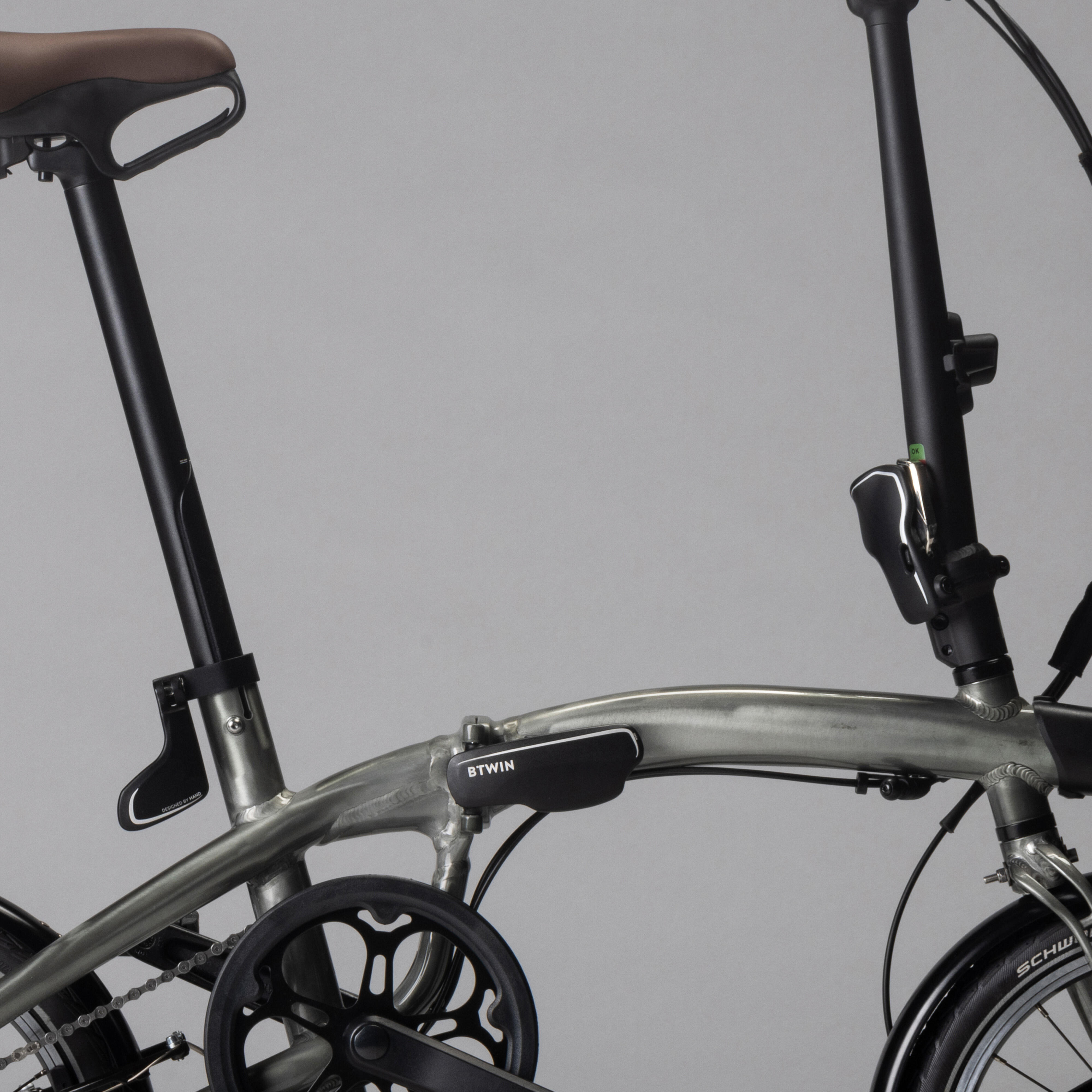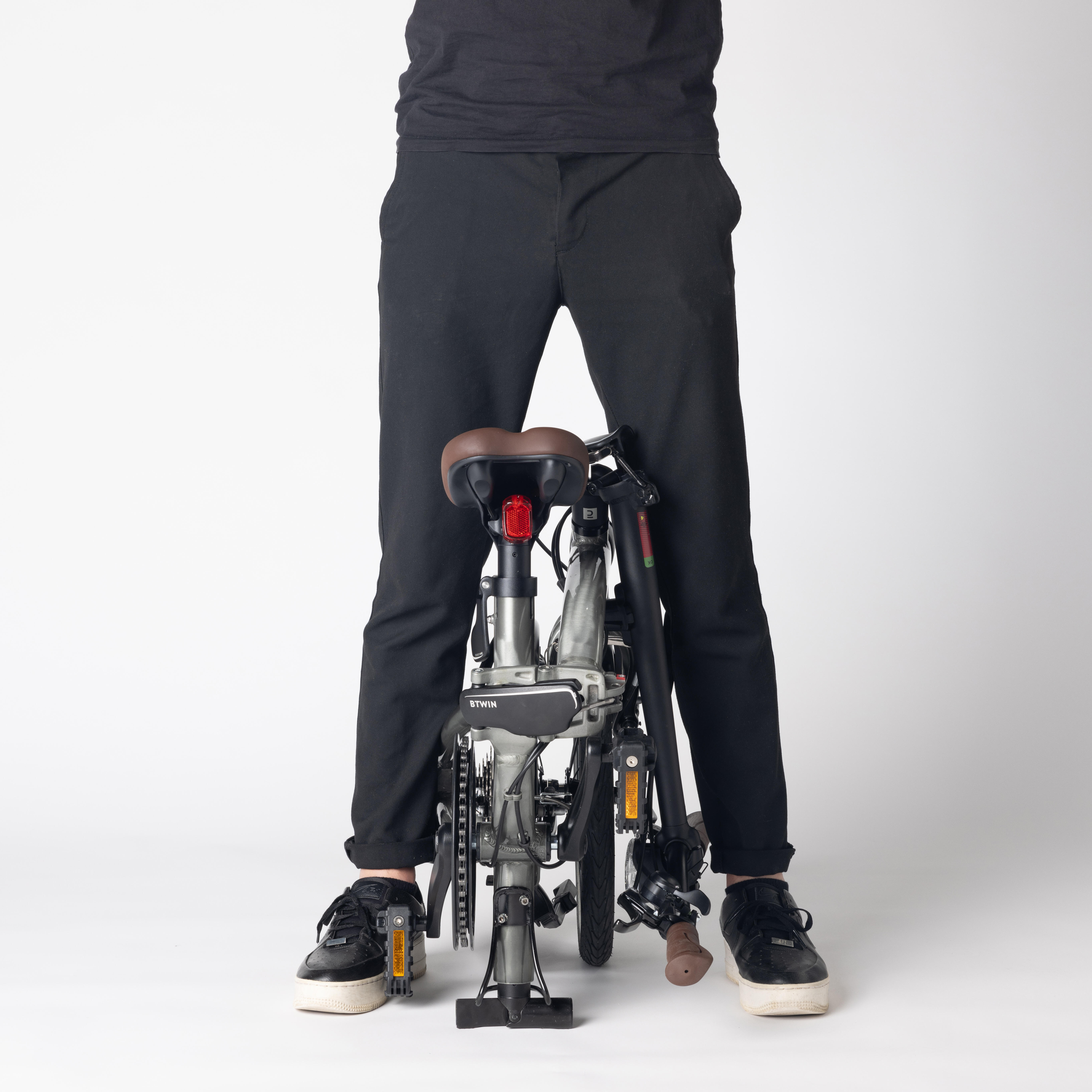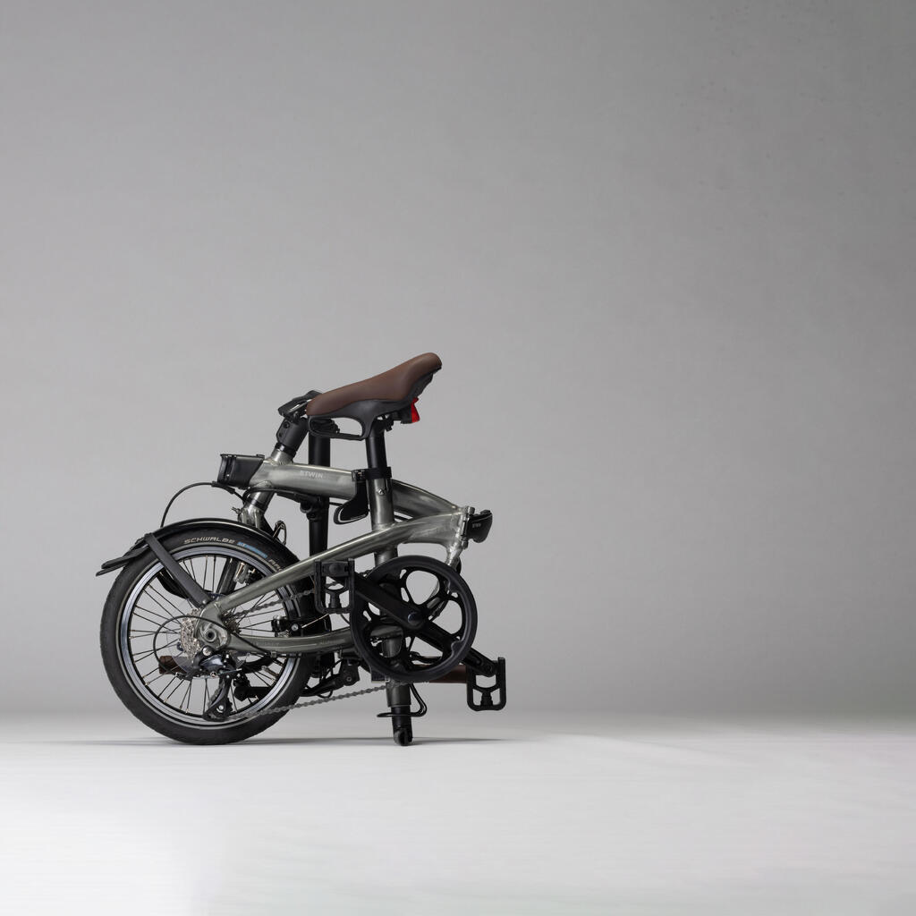 - The bottom of the seat post turns into a stand if you lower it all the way when folding the bike. This keeps the bike incredibly stable when it's folded so that you can put it away or take it on public transport.
