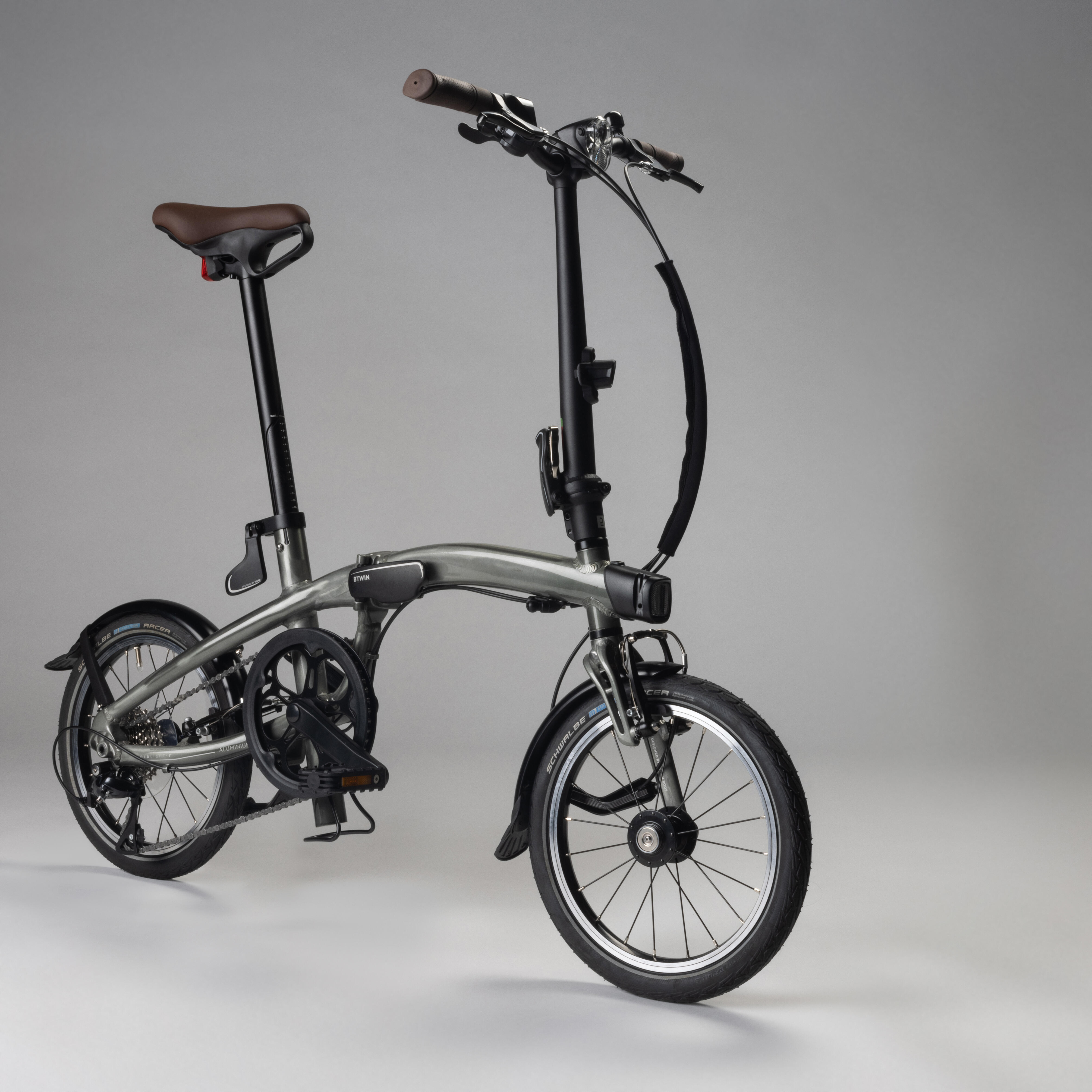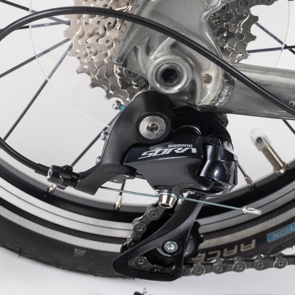 Its Shimano Sora 9-speed drive train (the same one we use on road bikes) makes it incredibly efficient, especially for an ultra-compact bike.