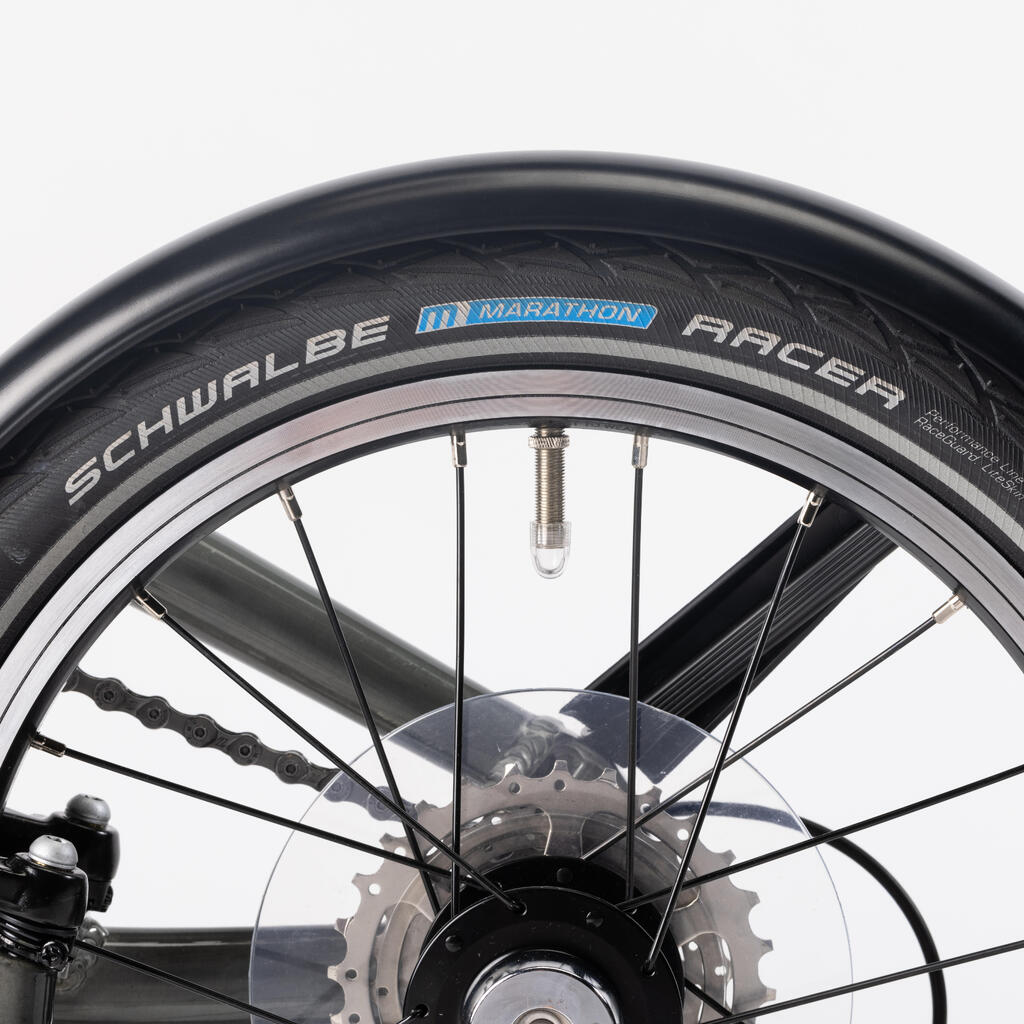 Single-walled, machined rims. Reinforced single-sided hubs with sealed ball bearings (the same technology that we use on our road bikes).The 16" wheel size is perfect for a great bike that's very compact.These smaller wheels make a bike easier to handle and agile than with big wheels.After your first rides, you're sure to be convinced.Don't be surprised!Try it, you'll love it.