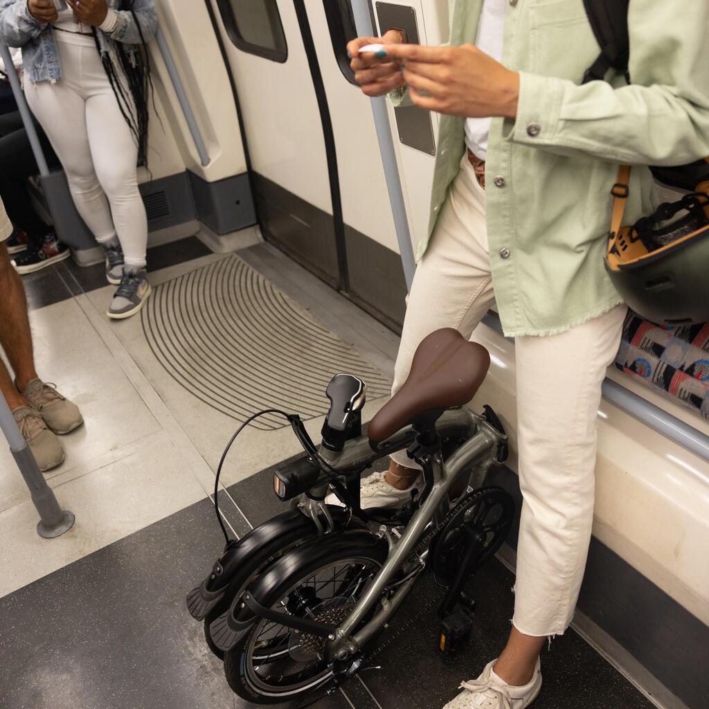 This clever system allows you to push your bike when it's folded, and to carry it without a second thought.