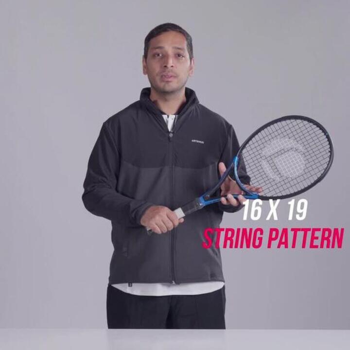 String pattern: This is the number of mains (vertical strings) x the number of crosses (horizontal strings). The more strings the pattern has, the more "closed" it is; the fewer it has, the more "open" it is. A more closed string pattern offers a greater feeling of control, but less power and spin. A more open string pattern provides more power and spin, but less control.