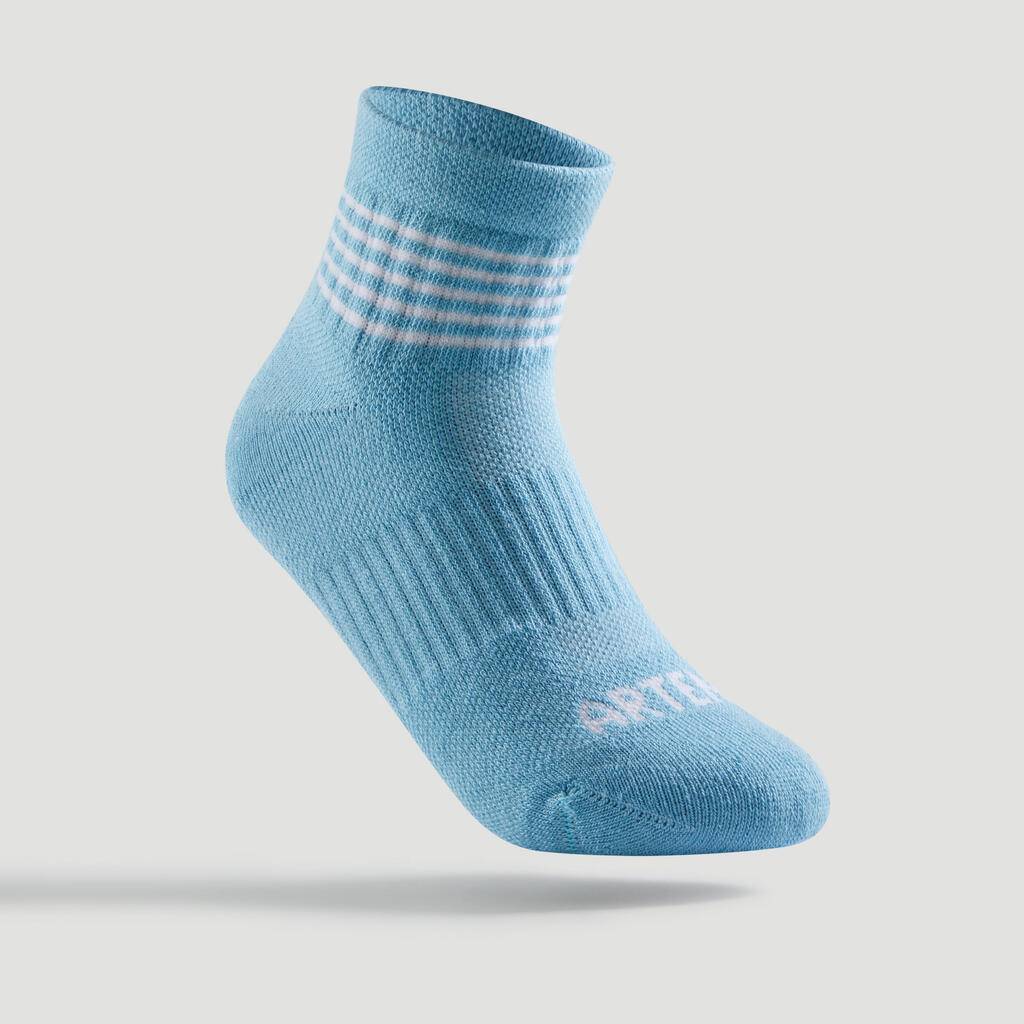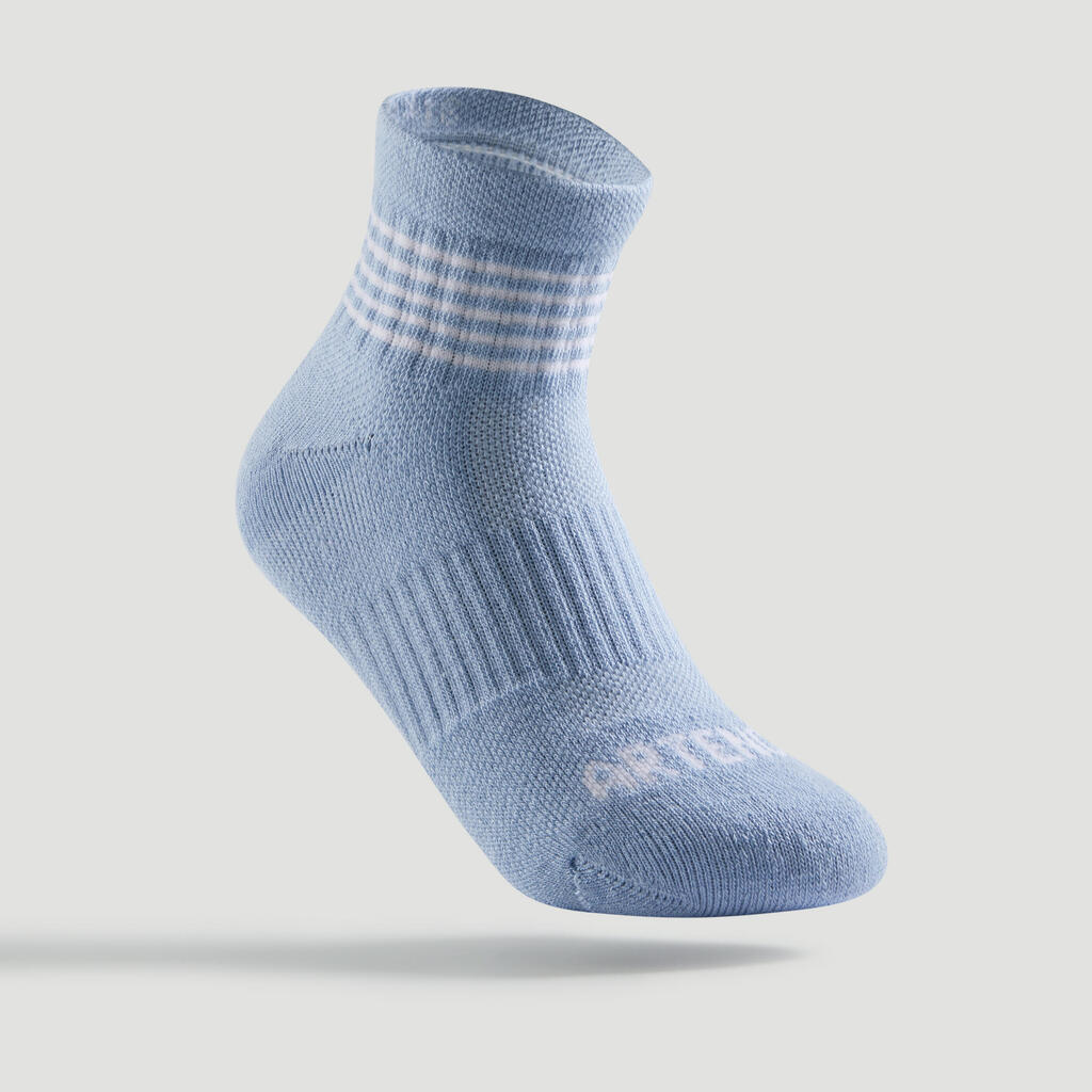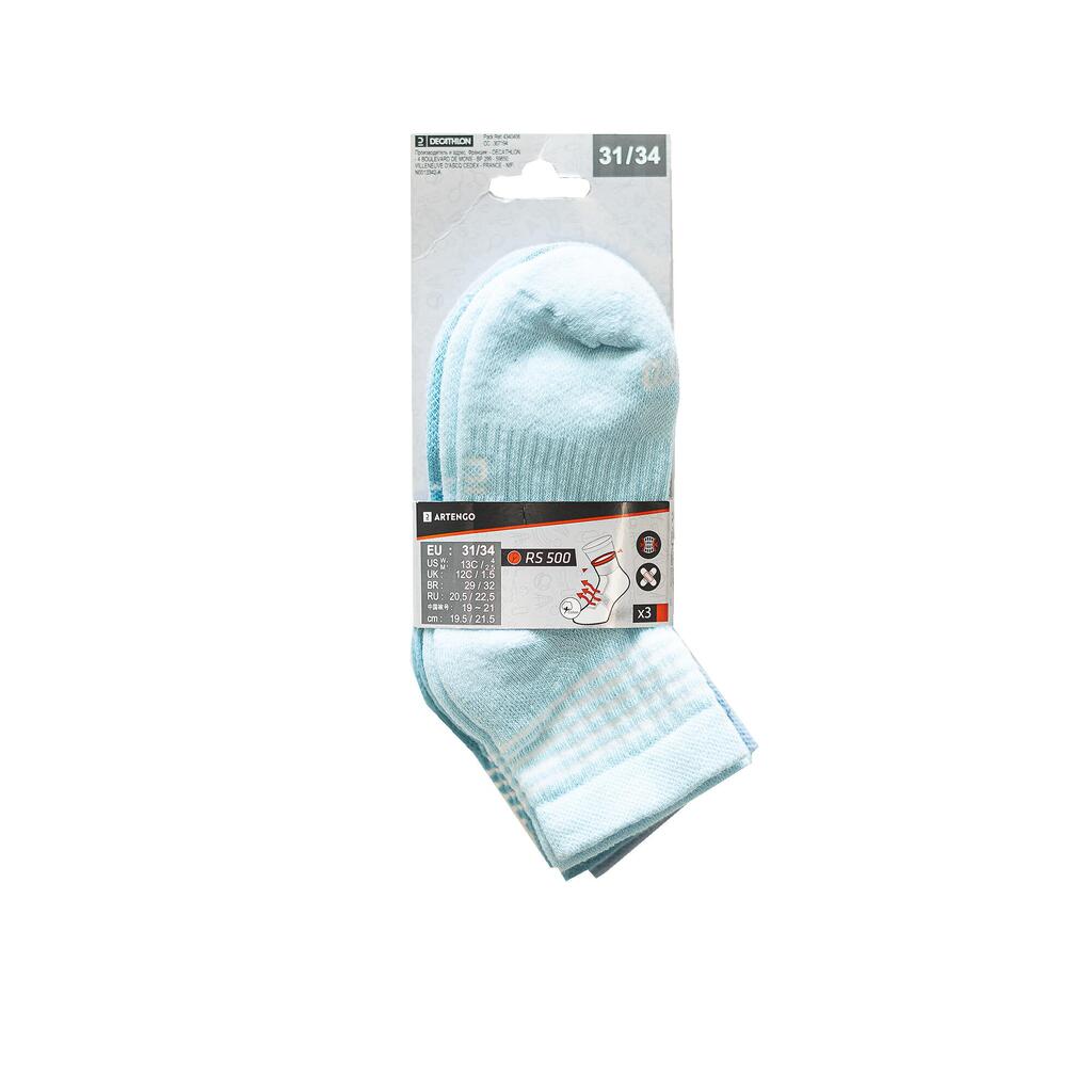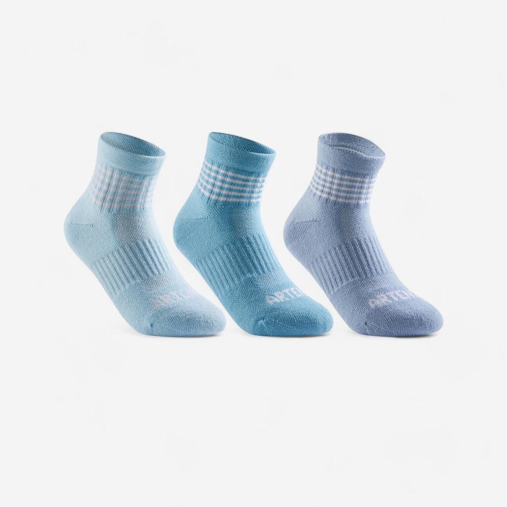 Kids' Mid-High Sports Socks Tri-Pack RS 500 - Blue/Lines