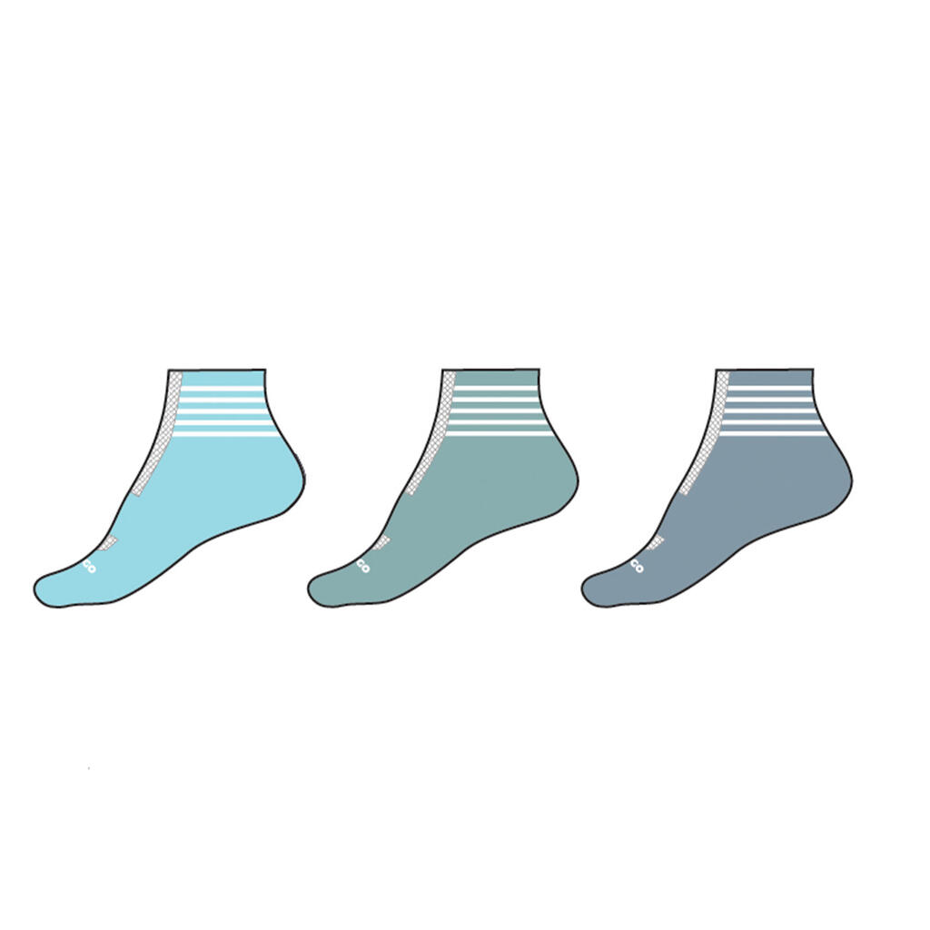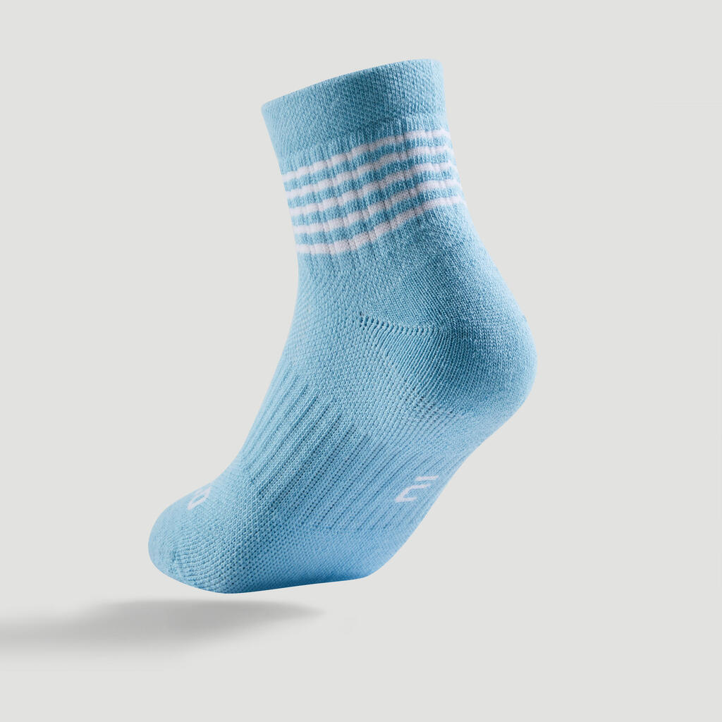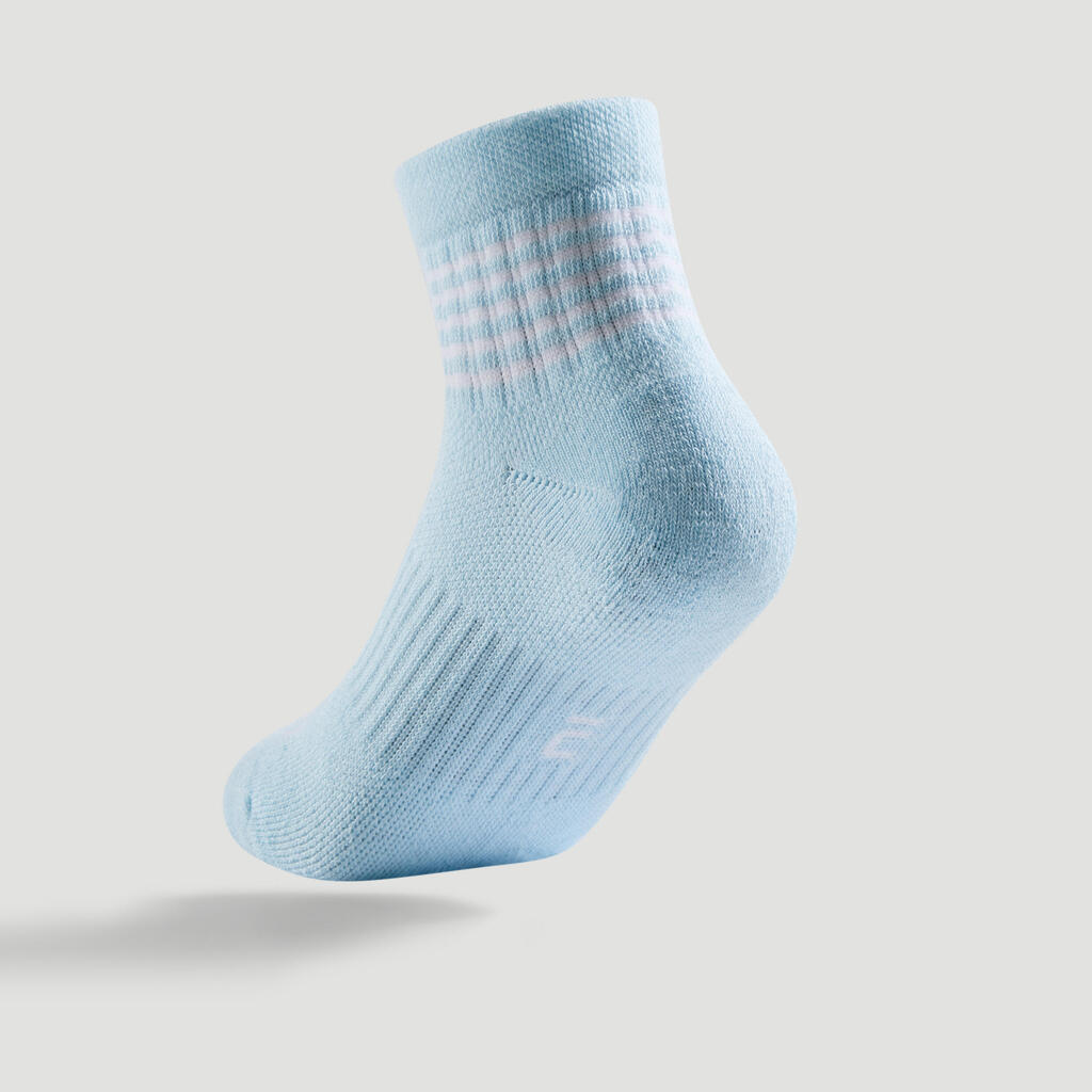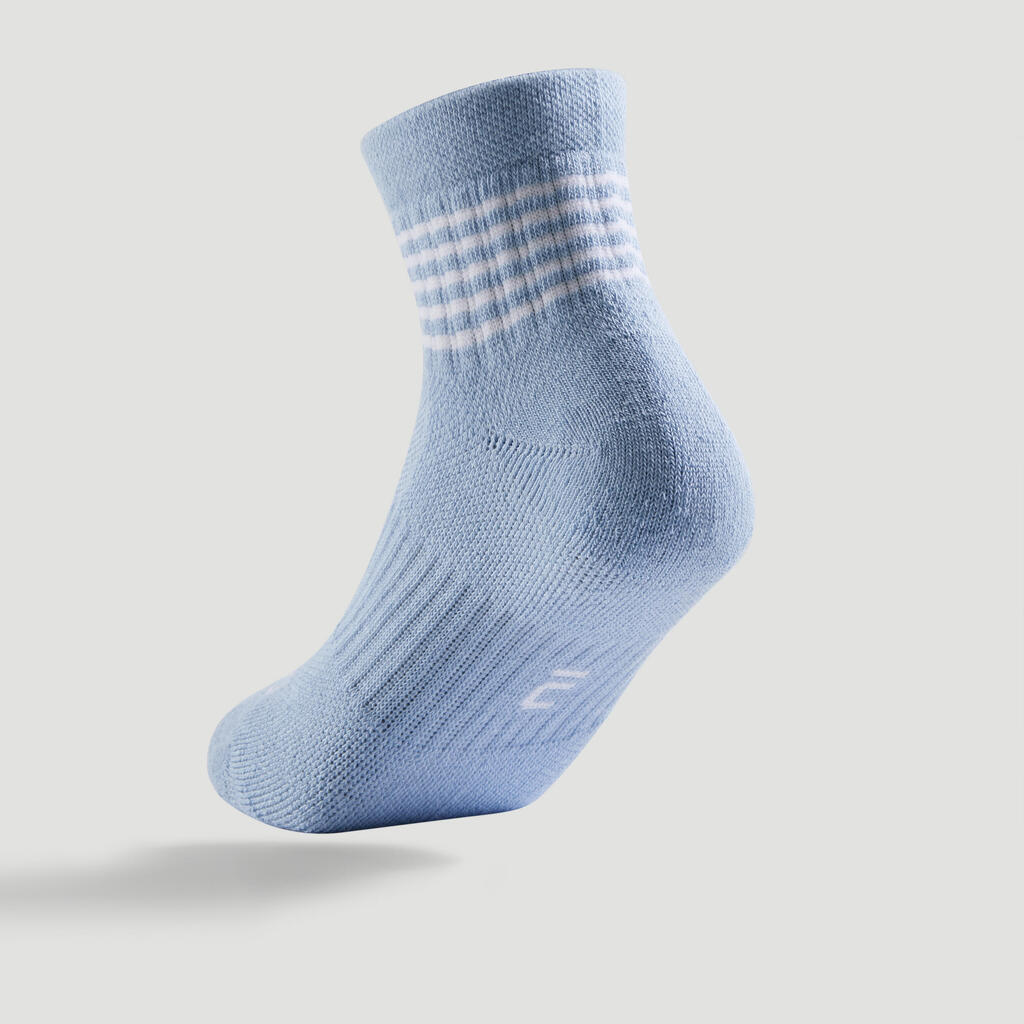 Kids' Mid-High Sports Socks Tri-Pack RS 500 - Blue/Lines