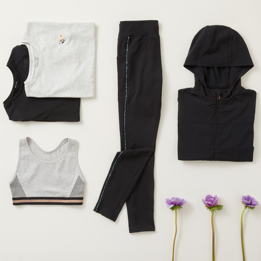 Our stylists chose a soft, stretchy with a great drape. The cut was designed to offer maximum freedom of movement and confidence to active girls.