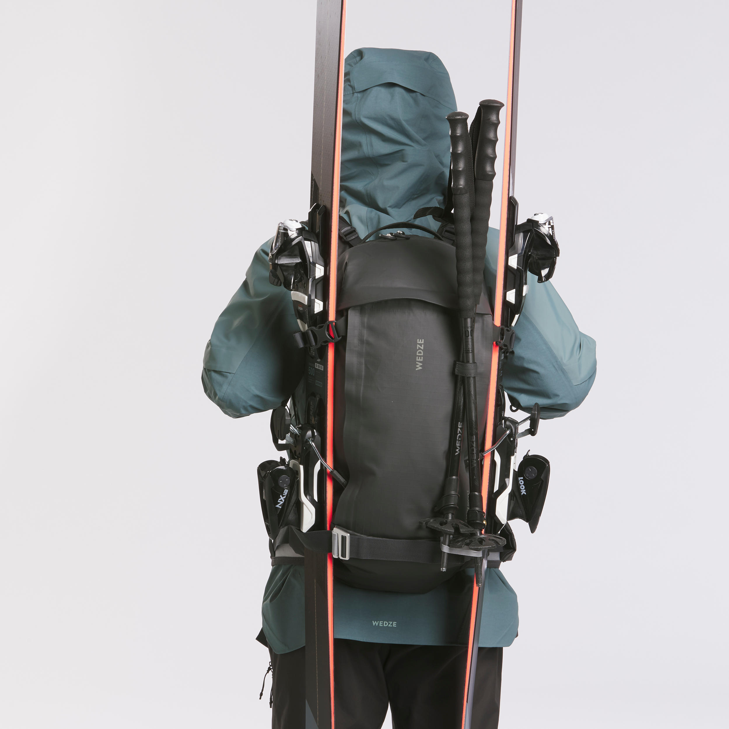 If you want you can attach your skis together using a ski strap, to better stabilise your pack.