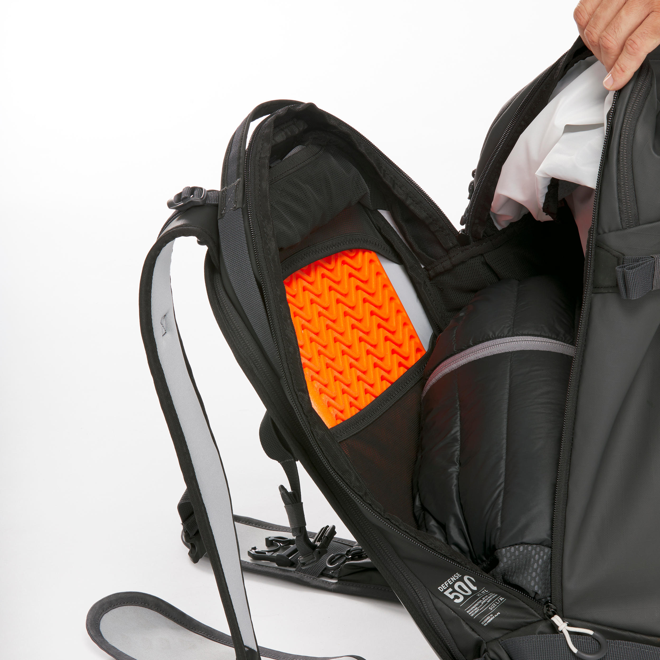 The bag comes with foam back protection tested according to a standard (NF EN 1621-2) and compliant with European regulations. This foam aims to protect you from strong impact caused by falls when freeride skiing.