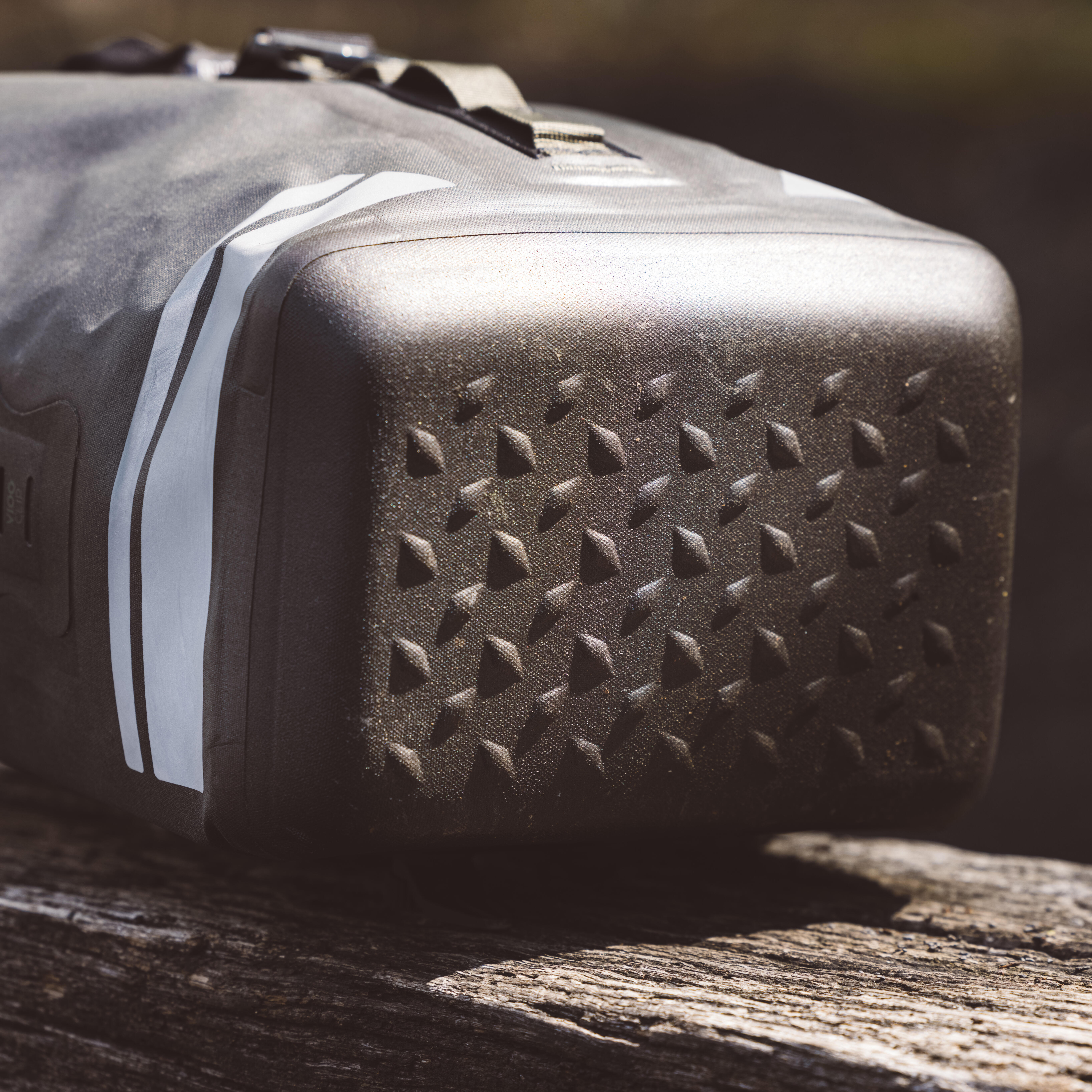 Watertight thanks to the roll top system. Rated IPX6 for waterproofing. This Ingress Protection Rating means that the product withstands a high-pressure water stream (100 L/min) from any angle.