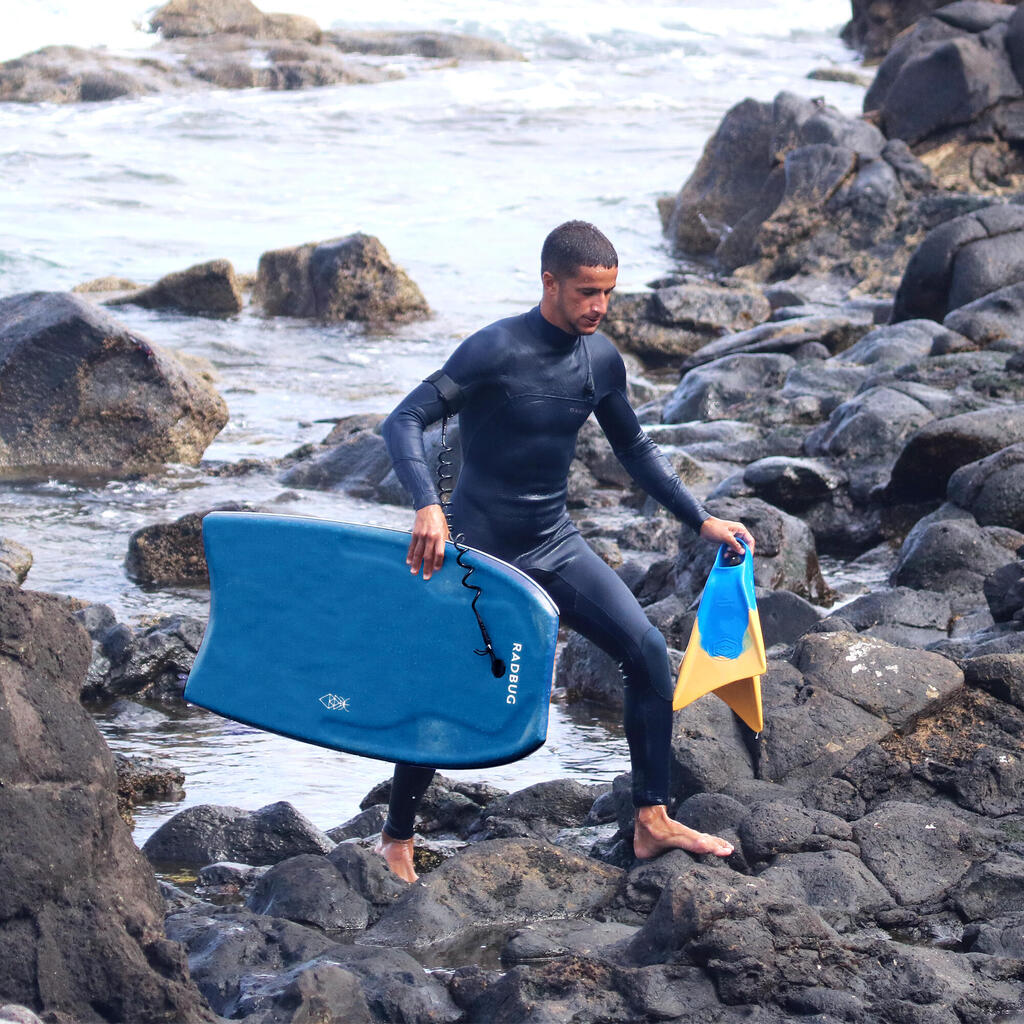For a good grip on the bodyboard, we recommend waxing the front of the board, the sides (rails) and under your belly. Use the right wax according to the temperature, sold separately in the surfing department.