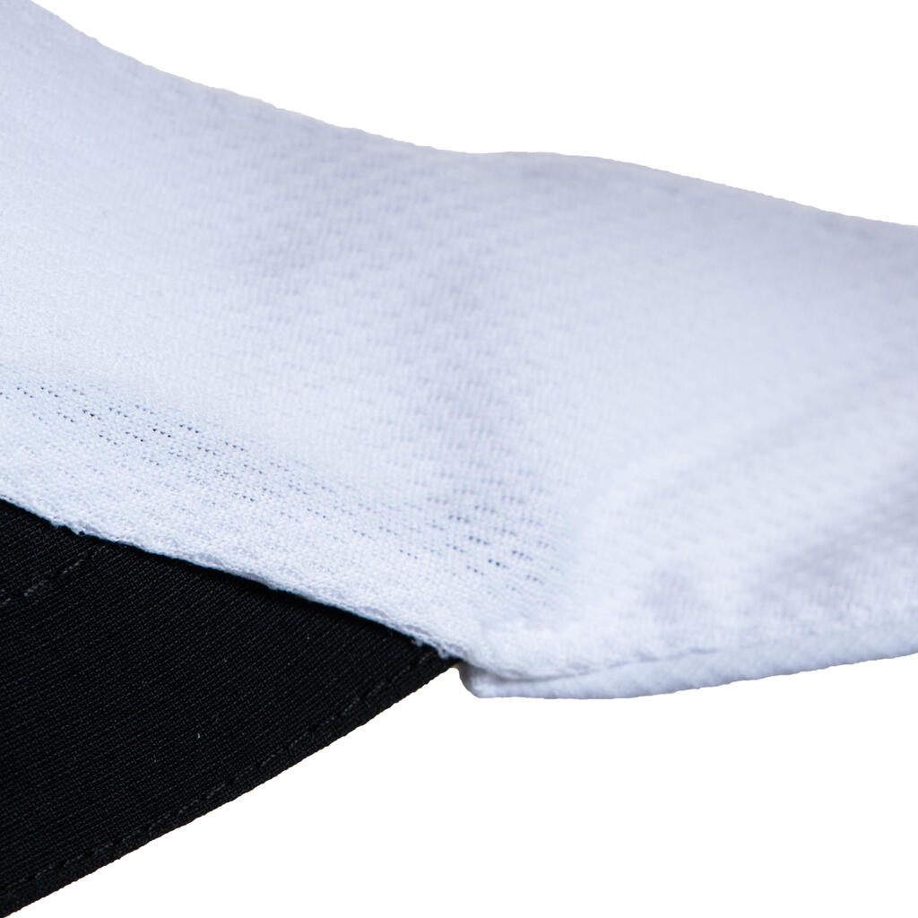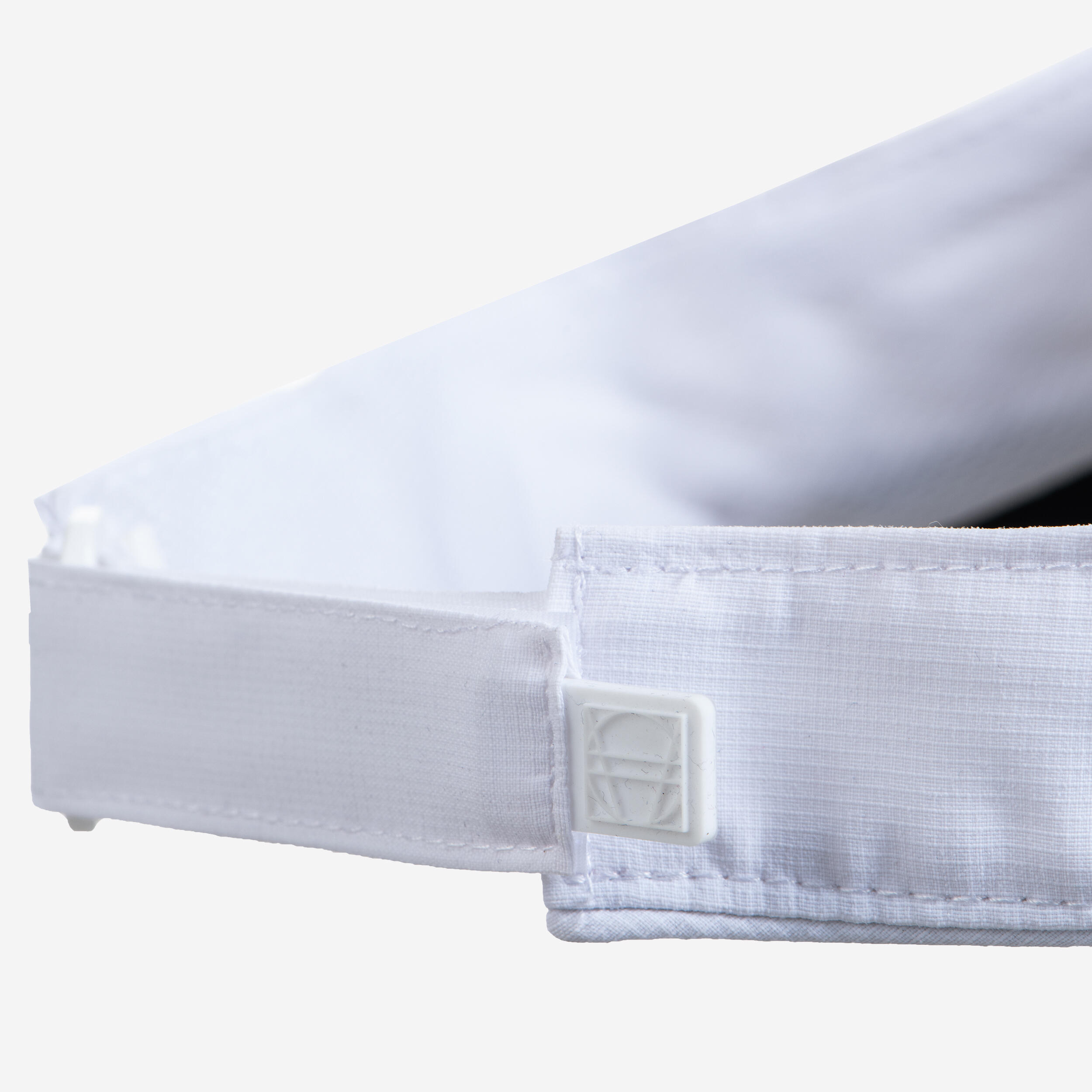 This sports visor protects your face from the sun. Its absorbent band is perfectly placed to absorb perspiration from your forehead. Also keeps hair out of your face.