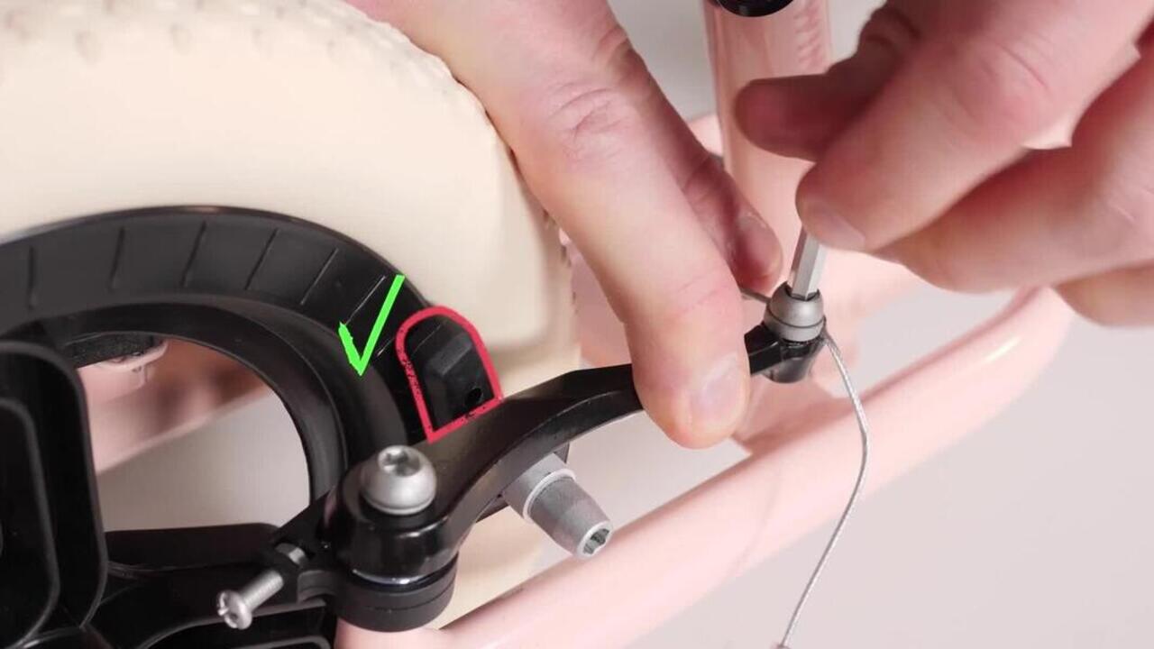 The brakes use a V-brake system with mini aluminium callipers. Our teams have designed it to be fully compatible with balance bike use: the adjusting screw is at the back so that the child's legs can't rub against it as they push themselves along.