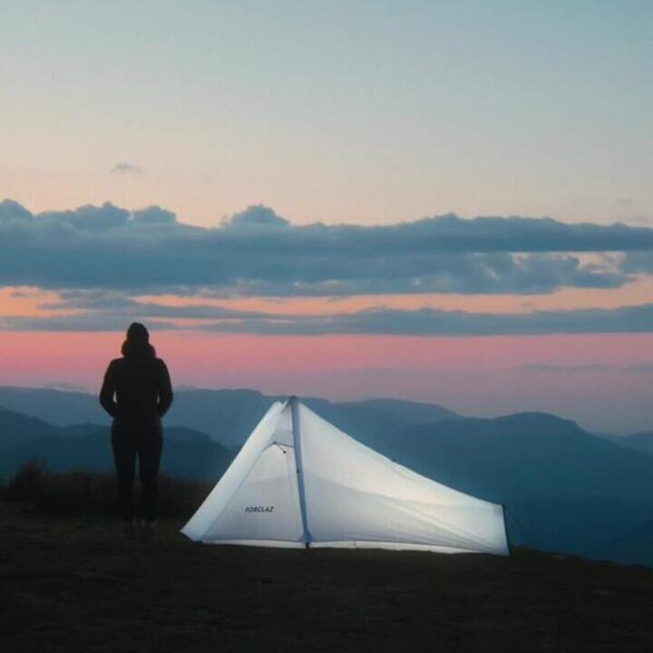 The 20D polyester (PES) flysheet (2,000 mm rating) and 40D polyamide groundsheet (3,000 mm rating) have a polyurethane coating (inside) and silicone coating (outside).