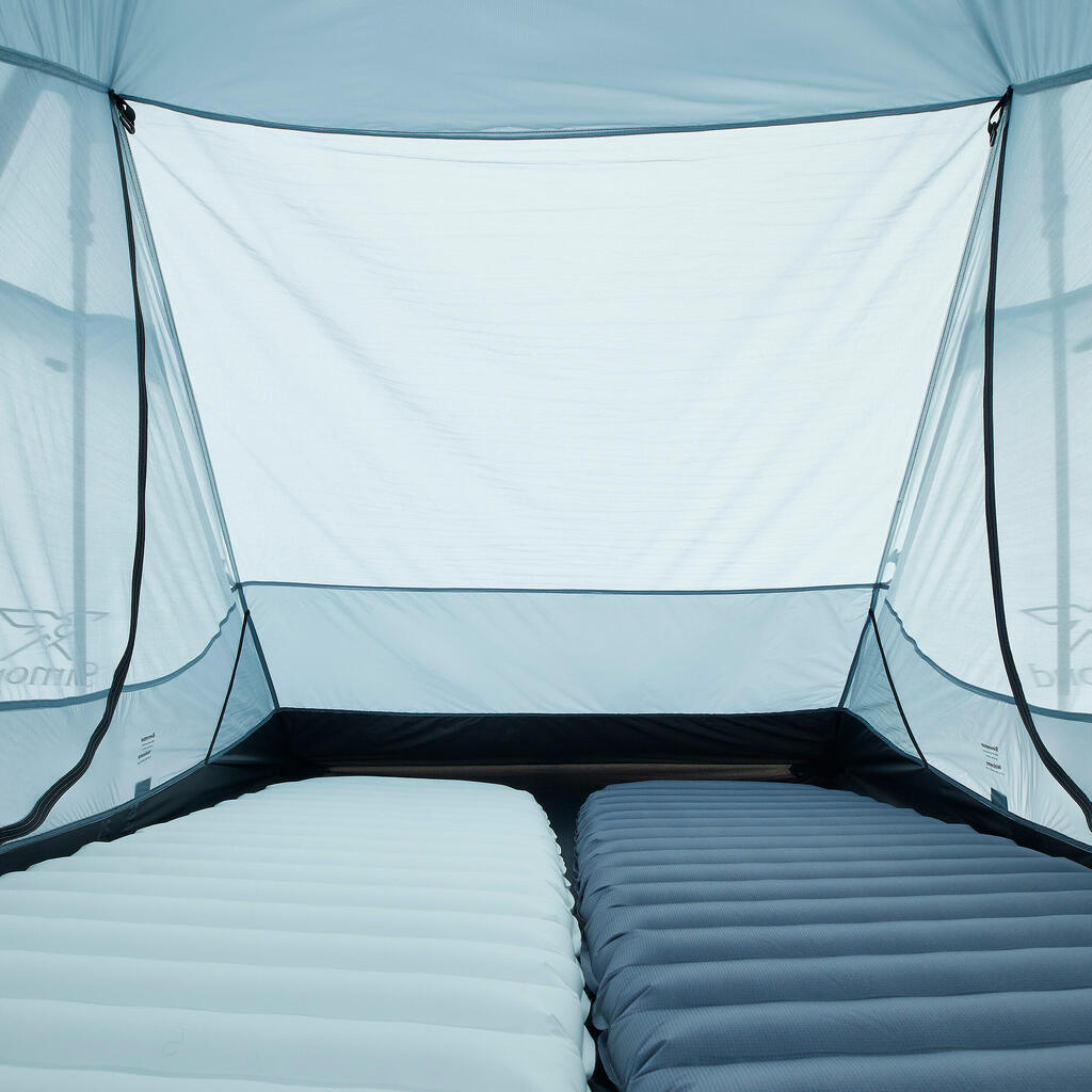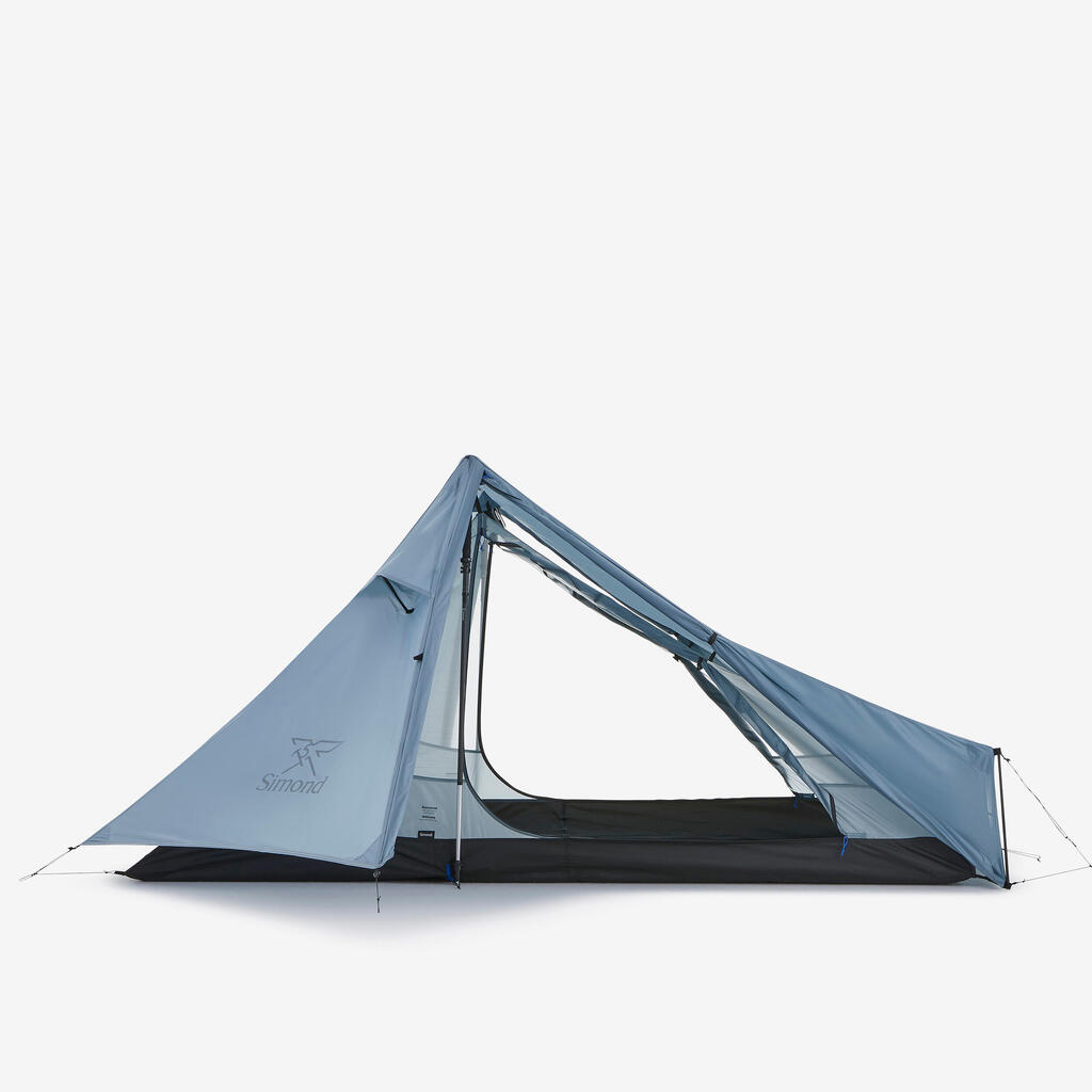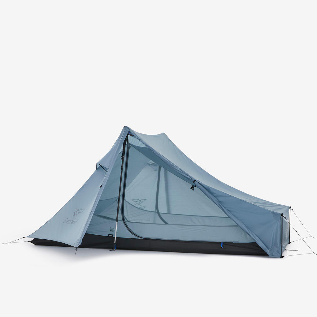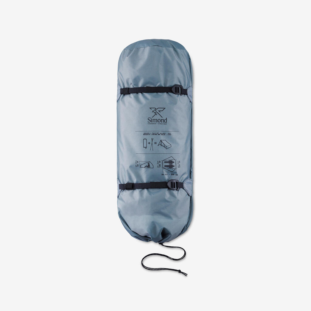 Our team designed this 2-person tarp tent without poles for experienced trekkers looking for an ultralight mountain bivouacking solution.