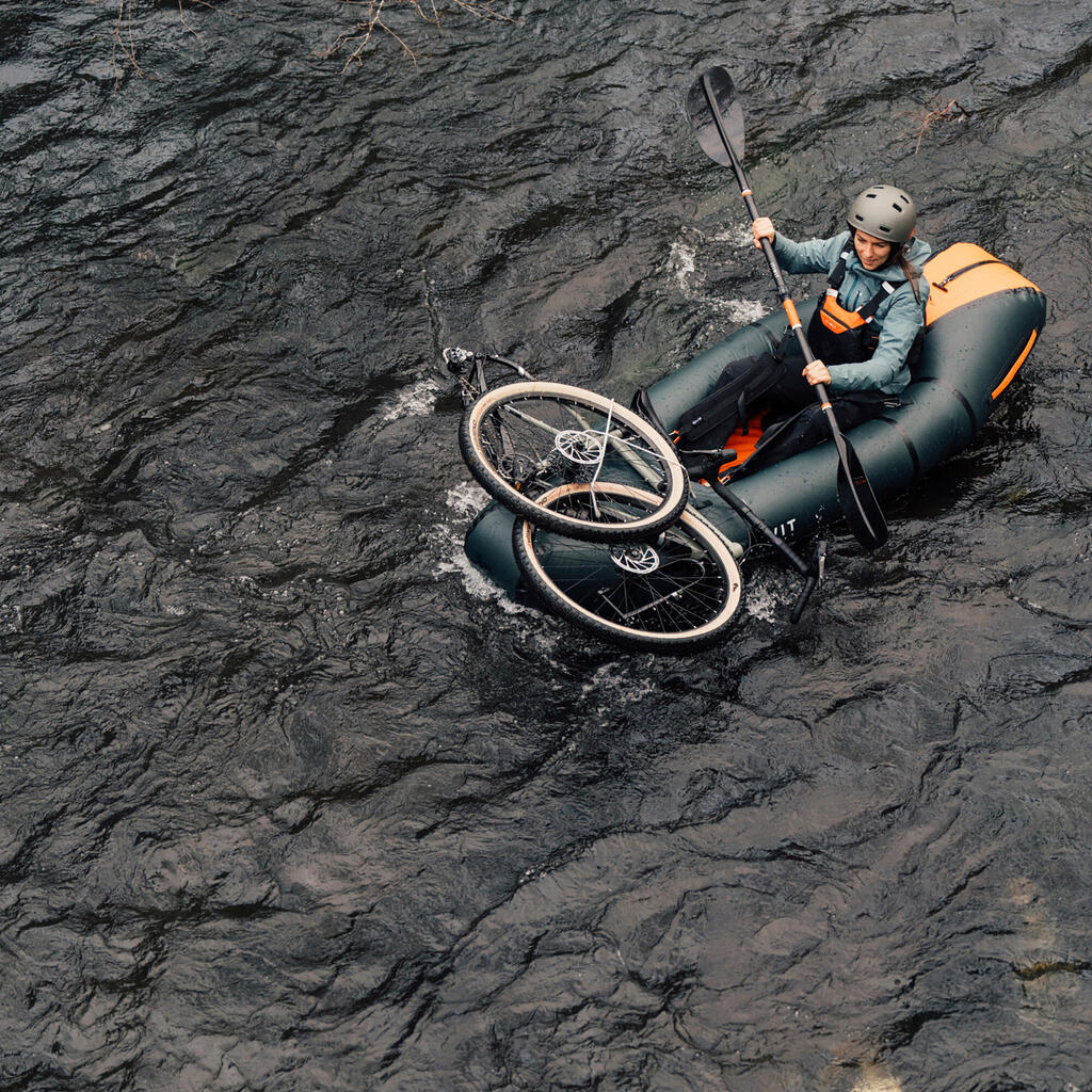 A packraft in the colours found in river scenery to allow you to have an immersive experience. For safety reasons, the orange allows you to remain visible at all times and to be tracked on the water. The Itiwit teams have created different prototypes in order to test the different shapes and provide you with maximum manoeuvrability and good stability. In the interest of compactness, the packraft only has the essentials so that it can keep up with you on all your adventures.
