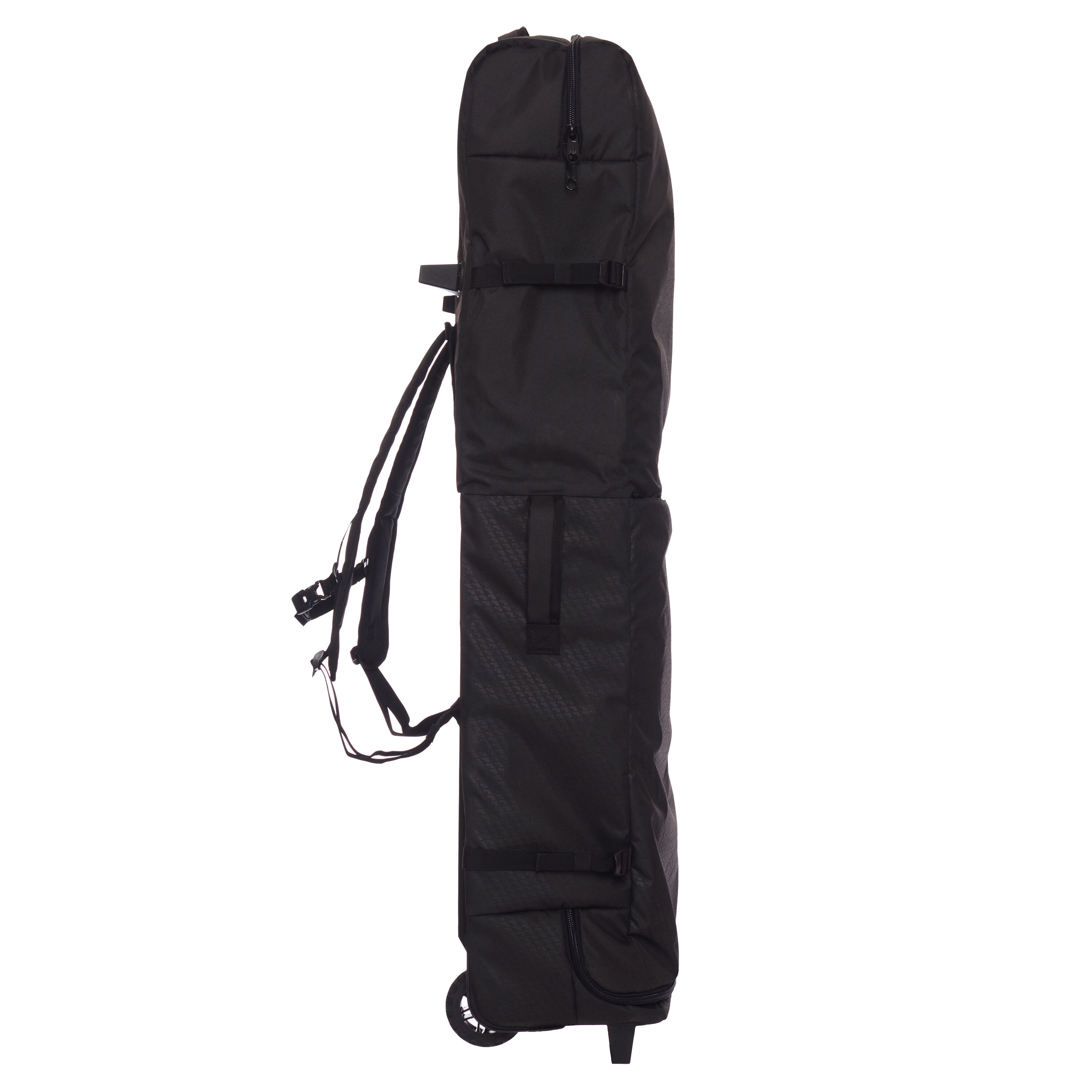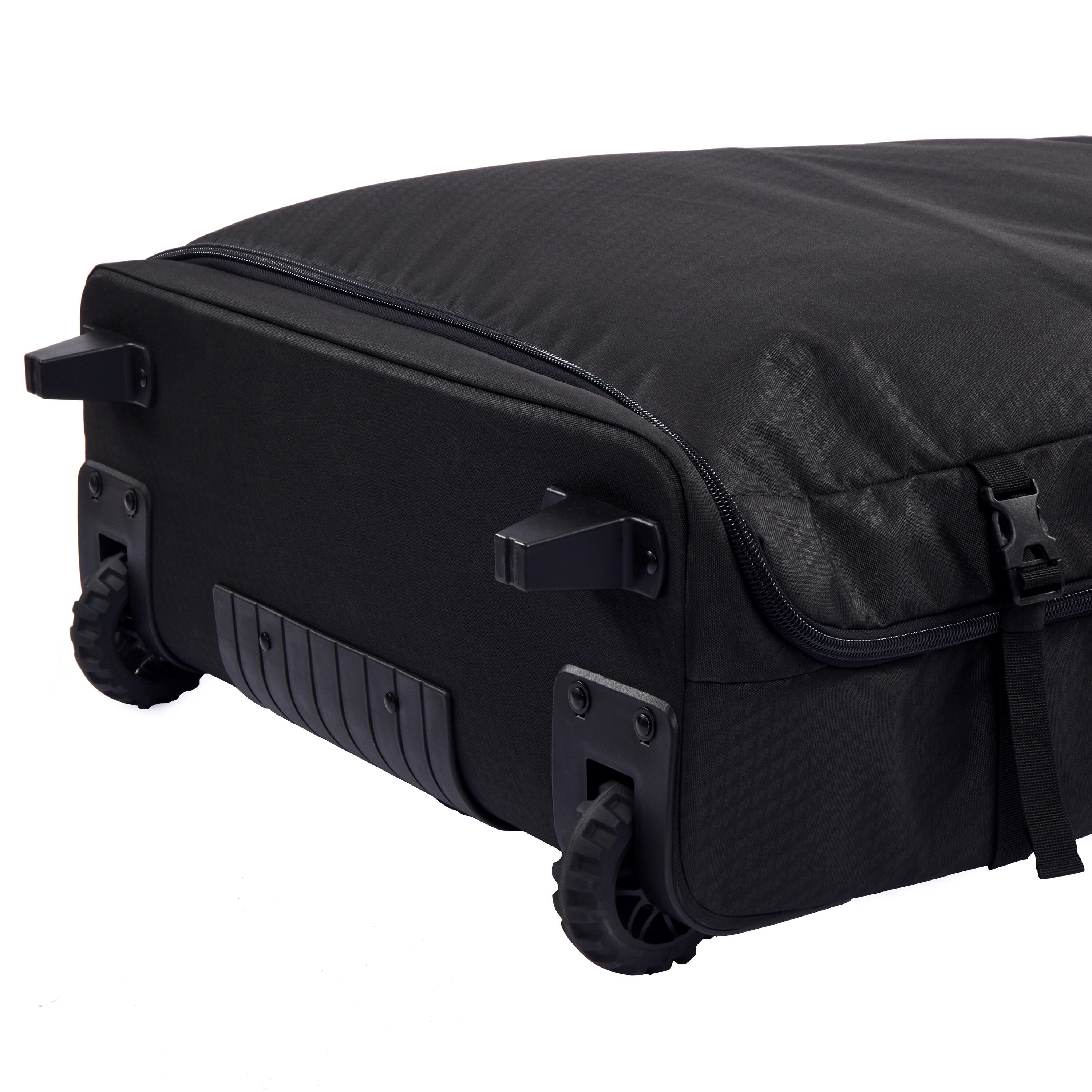 The volume of the bag can be adjusted to hold 1 to 3 bodyboards up to size 43.5”, equipment and clothes. Adjusting the thickness of the bag adapts its volume to the quantity of bodyboards, equipment and clothes. In this way, the contents of the bag are more stable and will not move, which makes the bag easier to carry when walking.