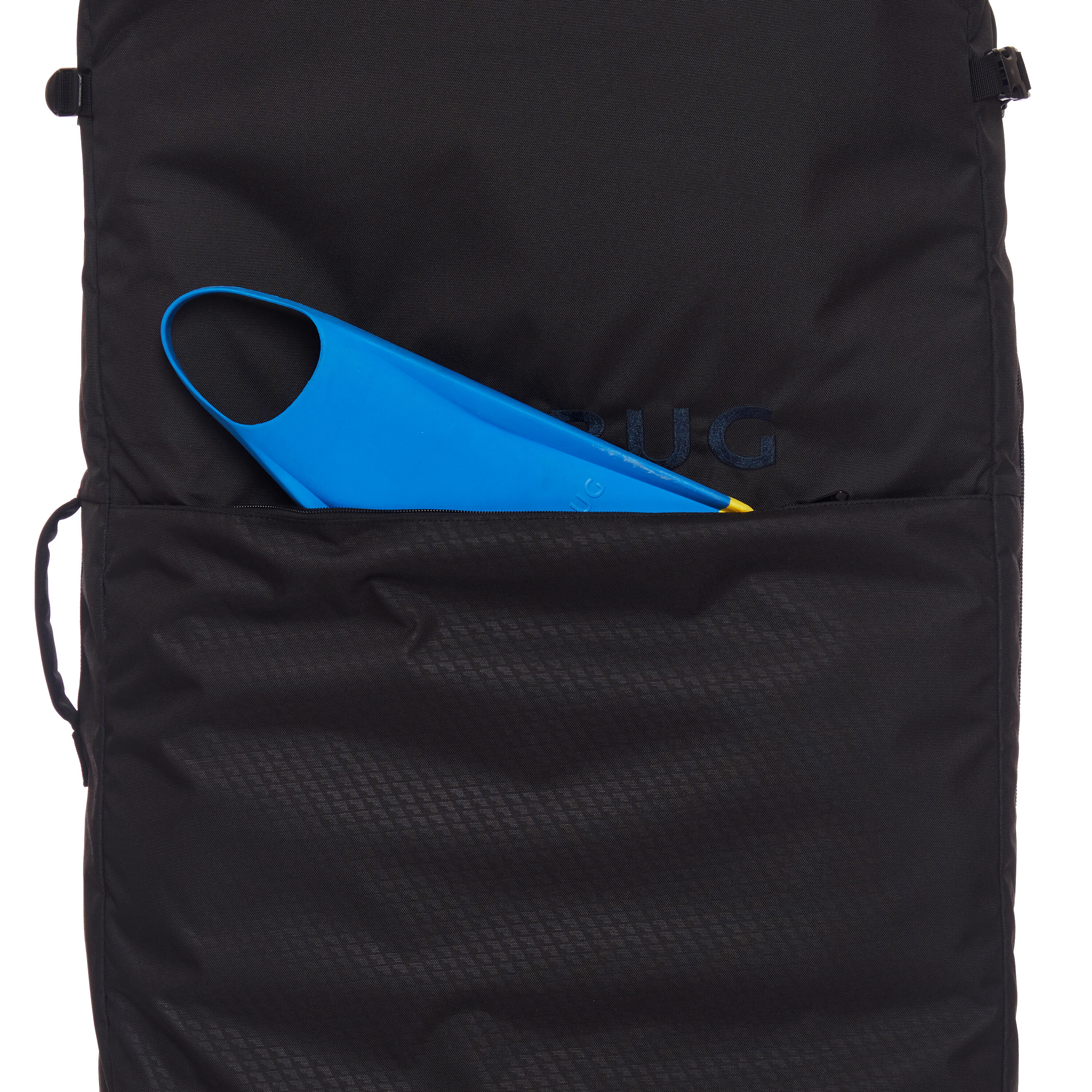 The main compartment can contain up to 3 43.5” sized bodyboards, and the bag has 3 large pouches for: fins and accessories, clothing and other travel items. There is also a medium-sized compartment on the outside, providing ready access to certain objects, without opening the bag.