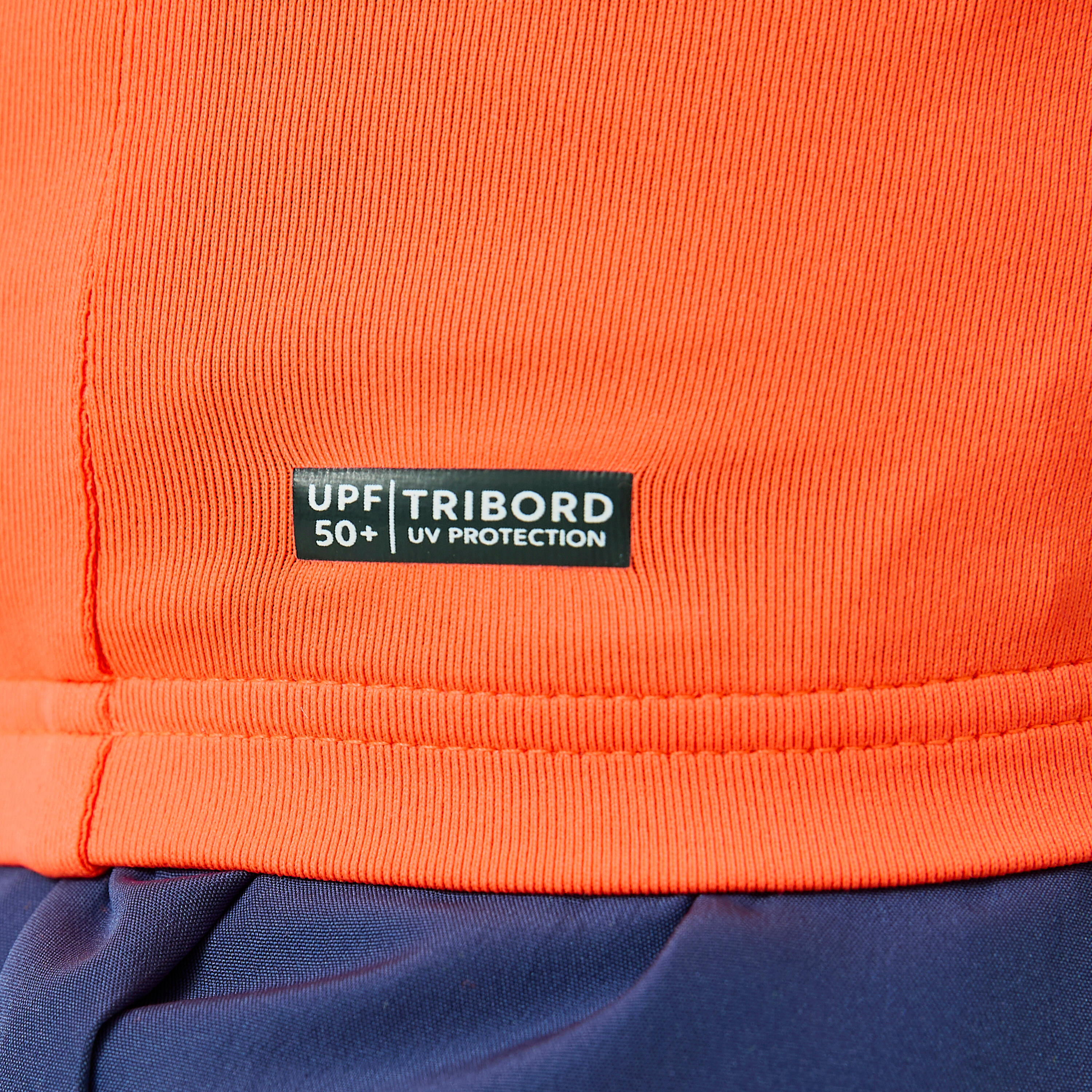 This UV-resistant t-shirt helps limit rubbing and chafing due to contact with the surfboard or bodyboard. It can also be used under a wetsuit to limit chafing, particularly around the neck and armpits. Reduced chafing from paddling movements has been proven for sessions of one hour. If you plan to surf for more than one hour, the UV top 500 will be a more suitable choice with its seamless panels under the arms.
