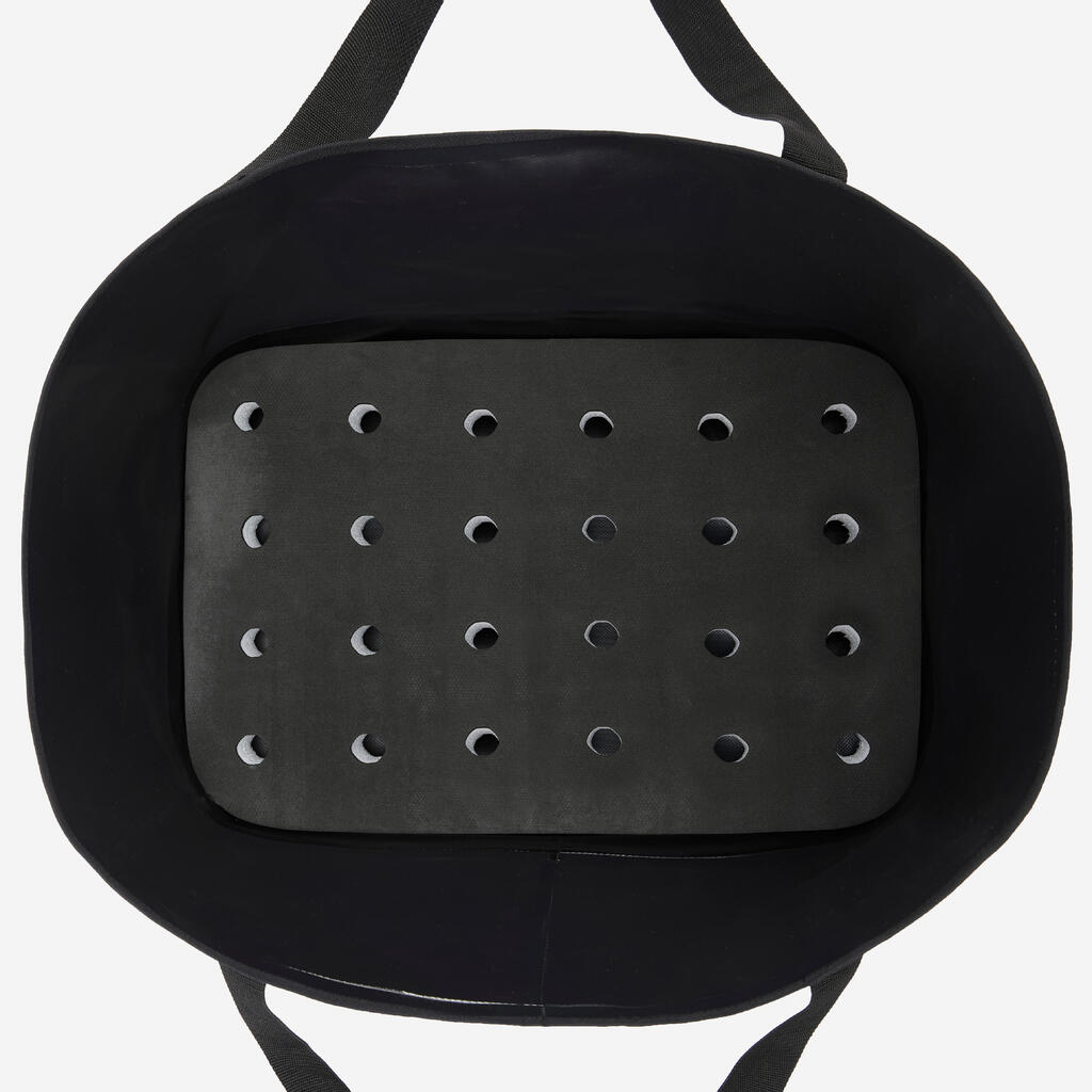 Thanks to its size and perforated foam interior, you can change standing up to protect your feet, as well as letting your wetsuit drain without damaging it.
