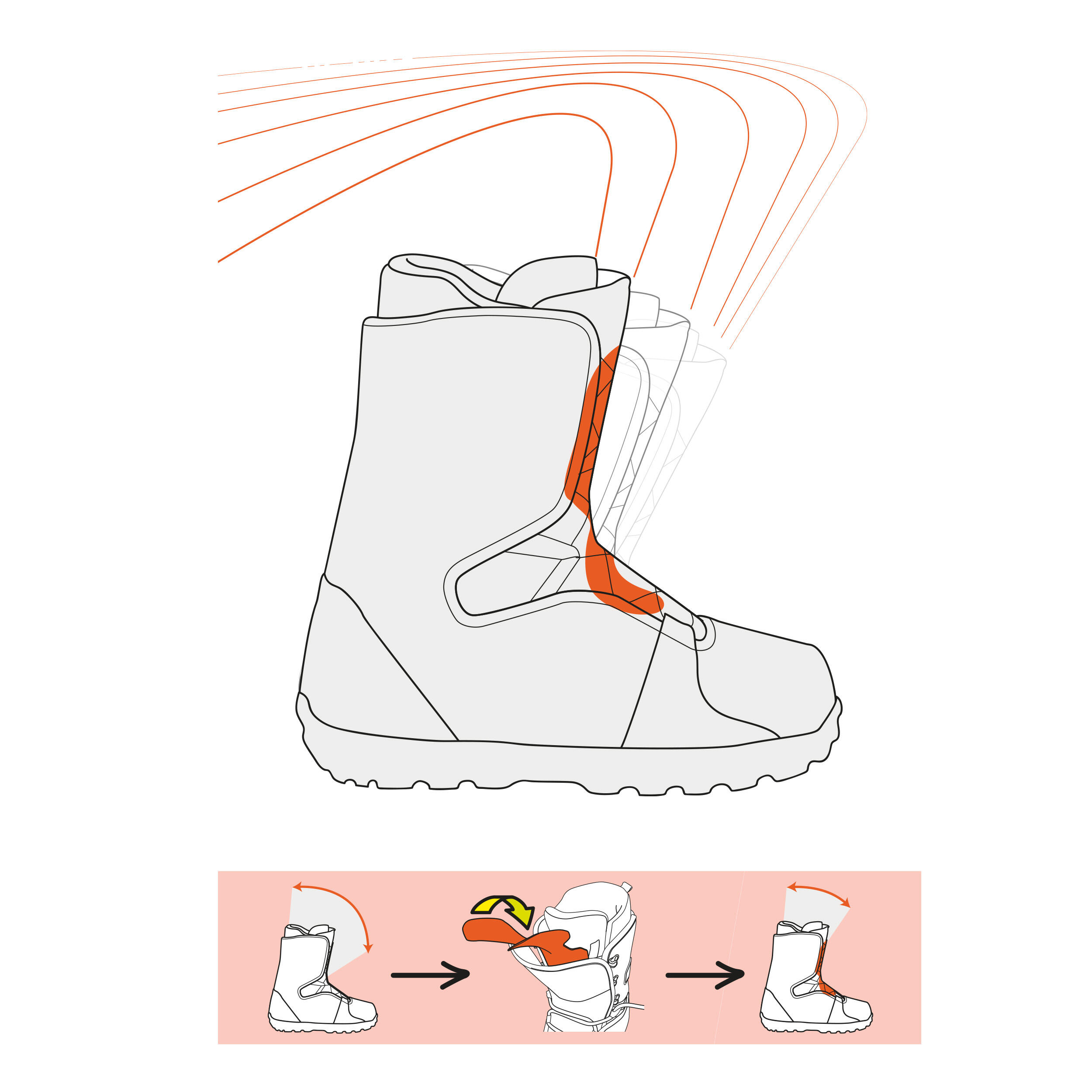 ou are a beginner in snowboarding, you have chosen boots for beginners, but after 10 days you feel that you have made good progress and the carving turns tempt you: raise your boots up a level with the Flex Up!