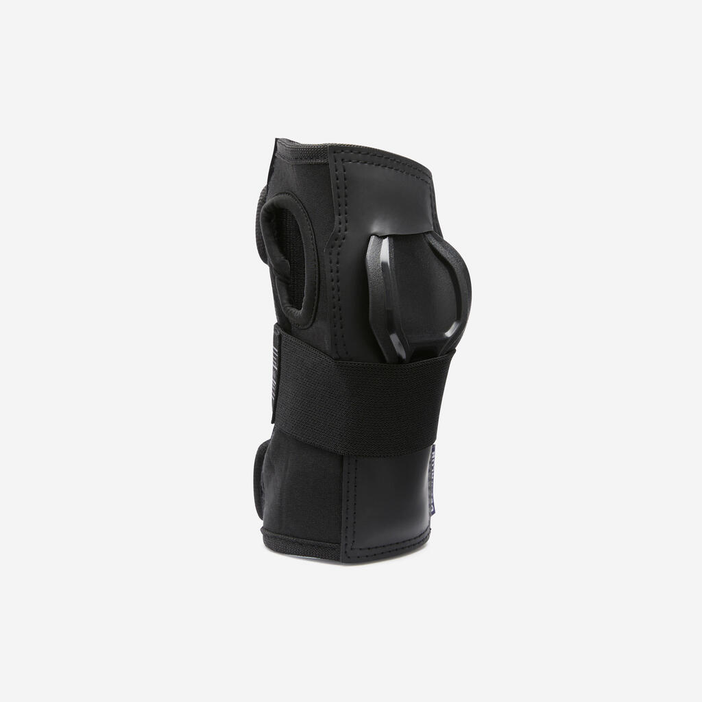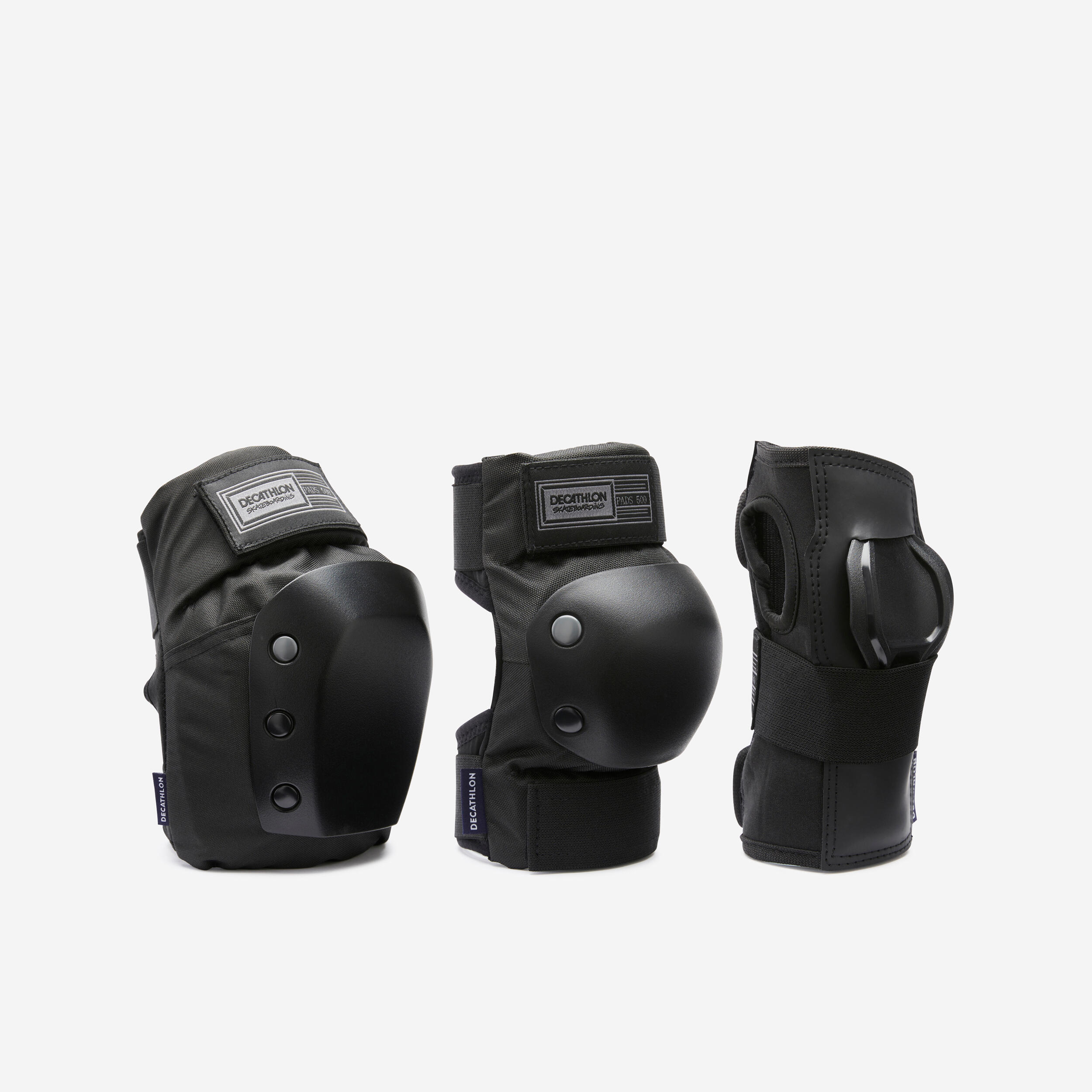 When skateboarding, falls are much more common than they are for inline skating, especially when learning tricks.It is therefore important to wear good protection.Skateboarding protectors, especially the knee guards, are designed to stay in place during falls (good retention), absorb repeated impacts, and above all have caps that are designed so that you can slide on your knees.The flat shape of the caps and the material chosen are designed for optimal glide performance on the knees (slide)