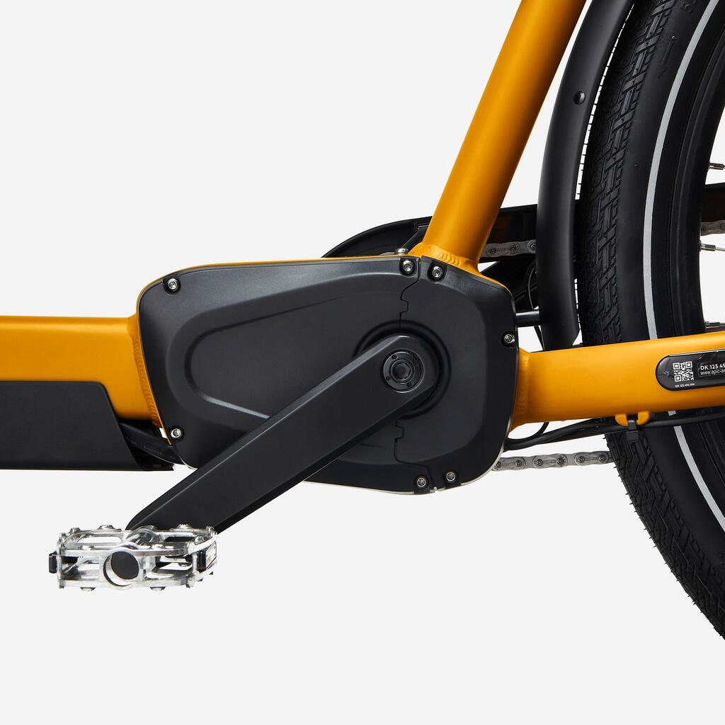 The motor is coupled to a torque sensor that provides electric assistance based on the force exerted on the pedals. It gives you a more natural pedalling motion.