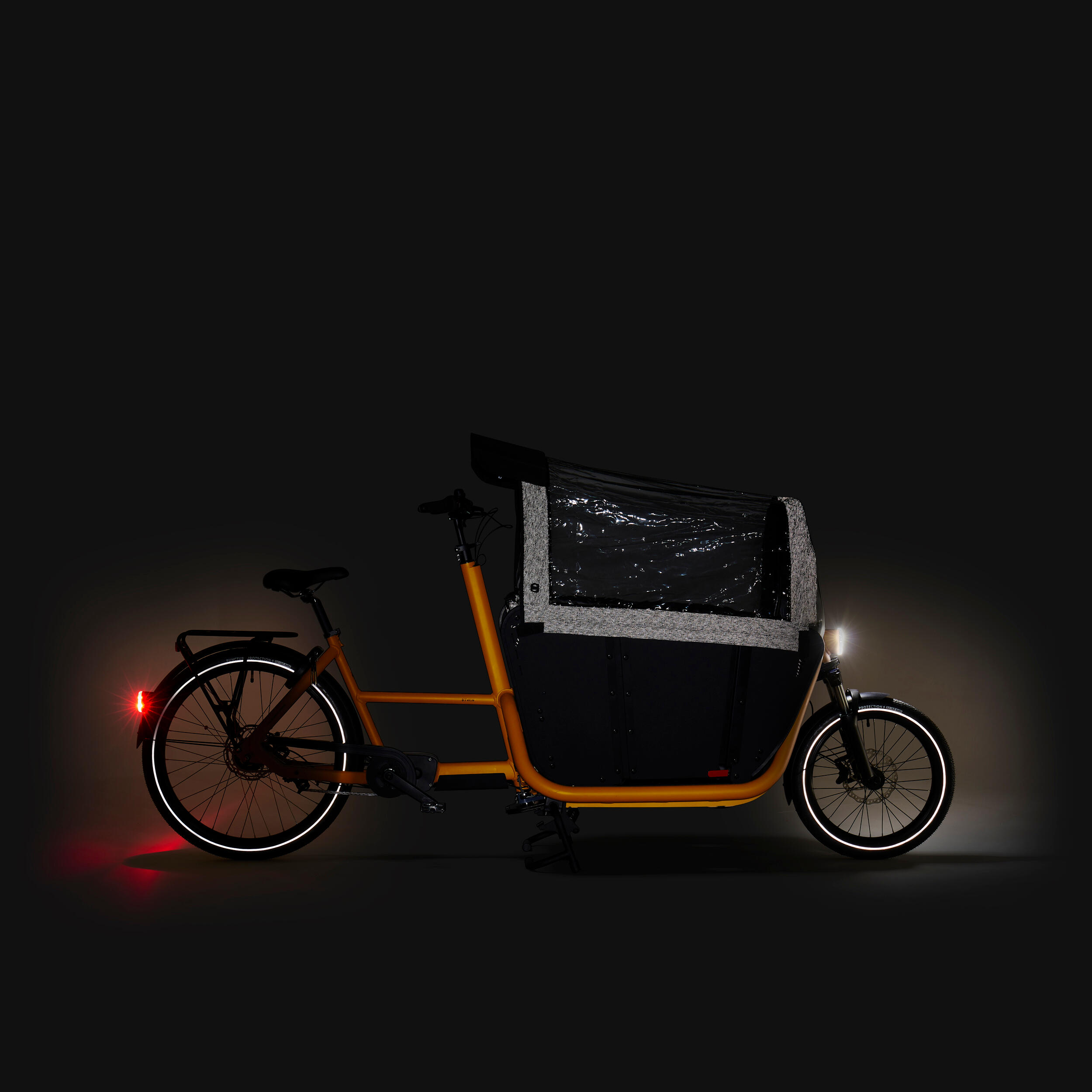 To keep you clean and dry at all times, the bike has a set of mudguards specially designed for this cargo bike.