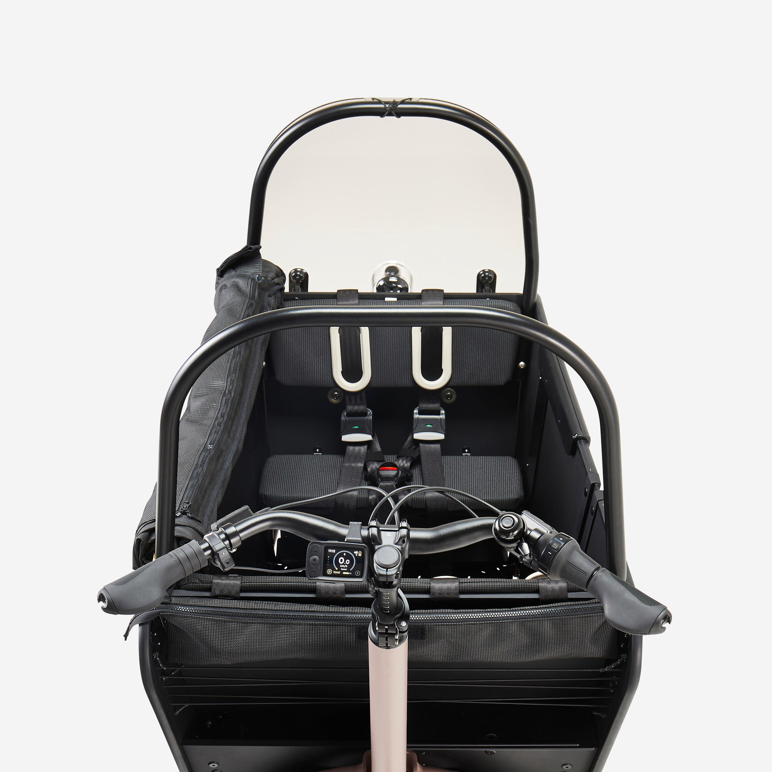 If you're looking for a large carrying capacity, the Cargo Bike F900E can accommodate up to 4 kids. Sold fully equipped with carrier, rain protector, windshield, and door for easy access.
