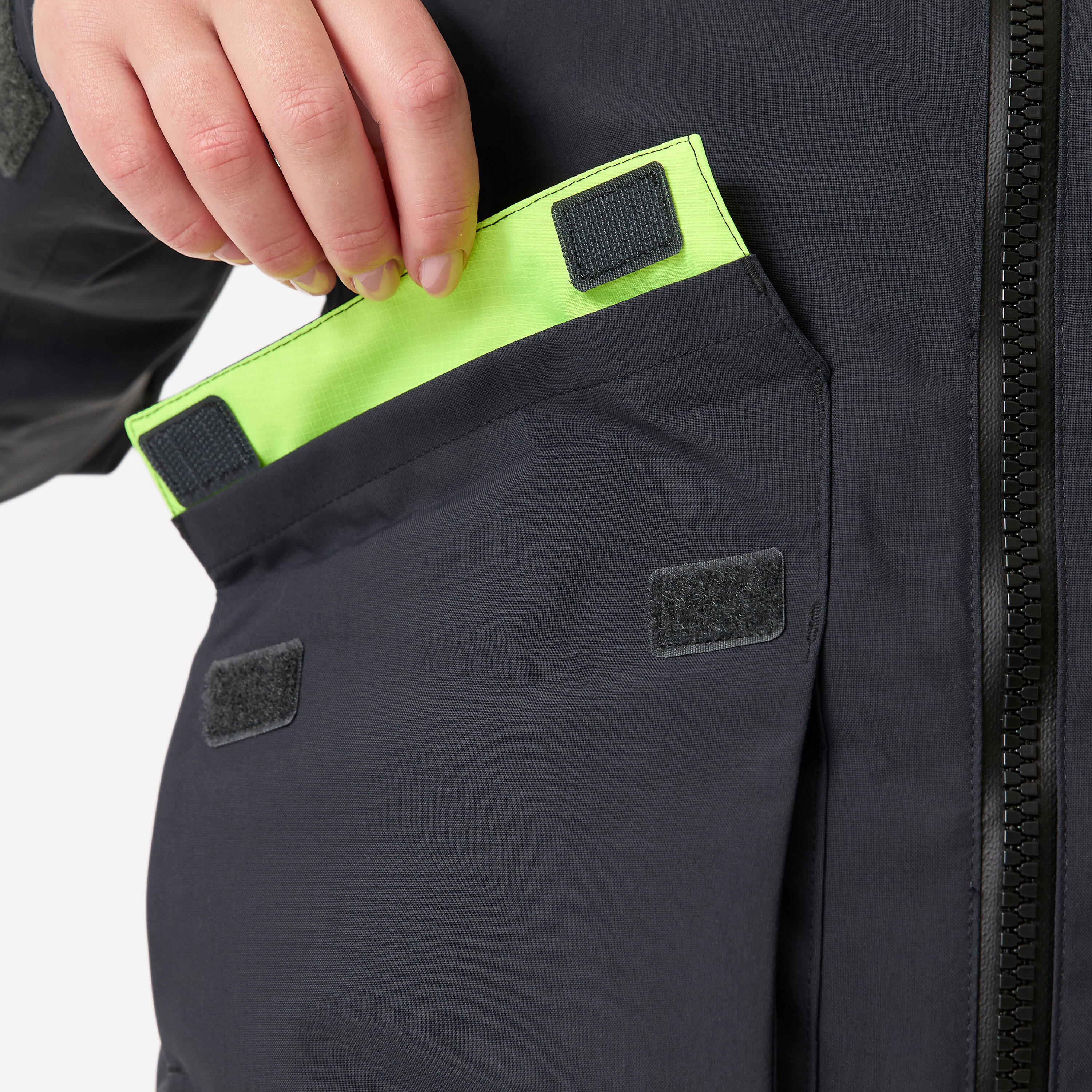 2 cargo pockets at the bottom of the anorak for your VHF radio, sail ties and cap. There is a small inner pouch in the right-hand pocket for knives or shackles keys.